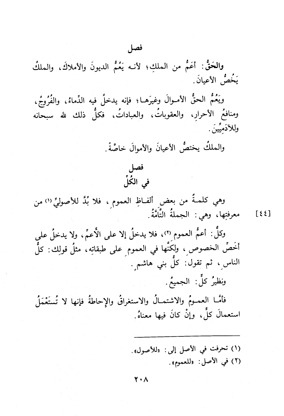 وكلٌّ: أعم العموم (٢)، فلا يدخلً إلا على الأَعم، ولا يدخلً على أخَص الخصوصِ، ولكَنَها في العمومِ على طبقاتِه، مثلً قولِك: كلُّ الناسِ، ثم تقول: كلُّ بني هاشمٍ.