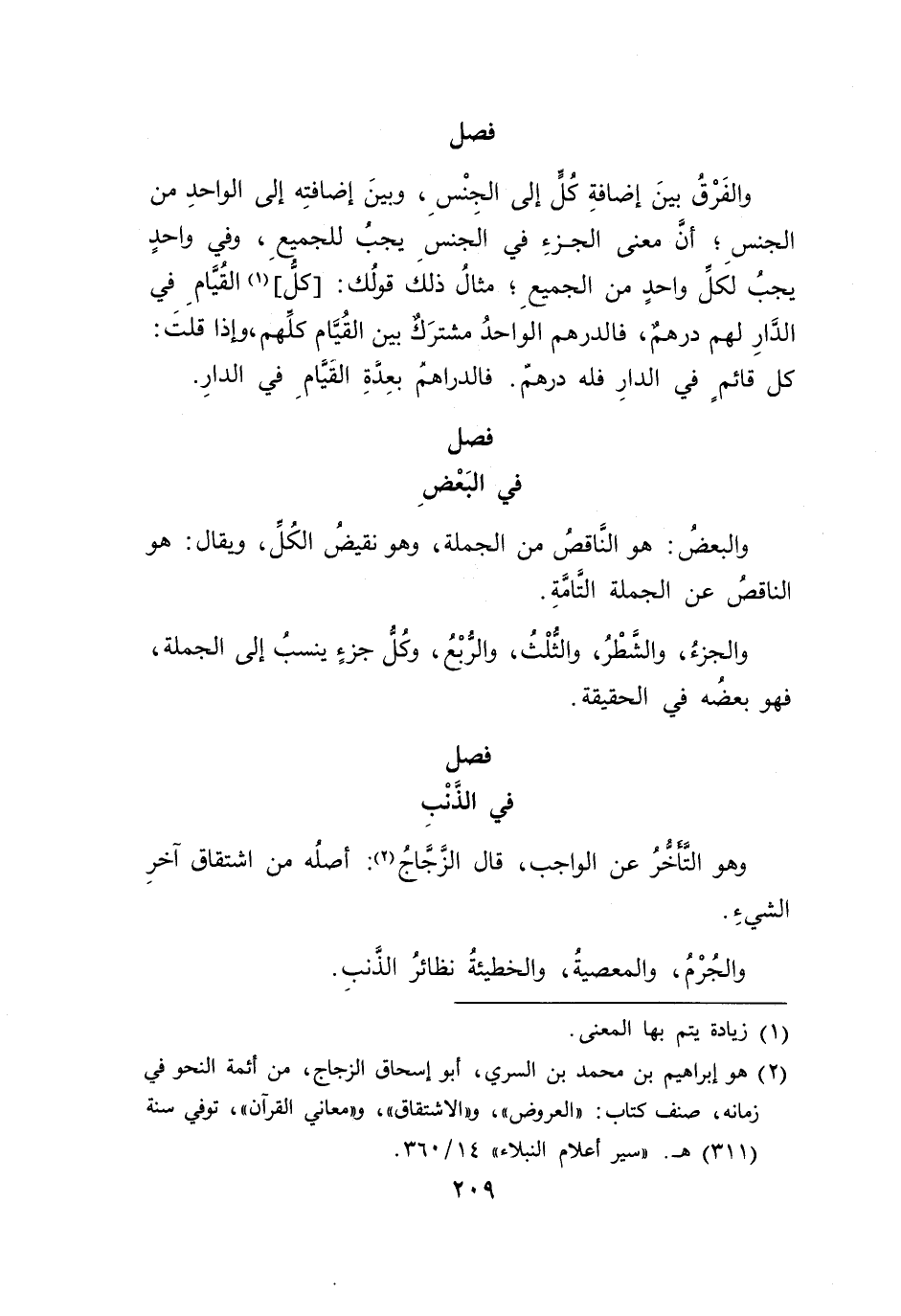 (٢) هو إبراهيم بن محمد بن السري، أبو إسحاق الزجاج، من أئمة النحو في زمانه، صنف كتاب: "العروض"، و"الاشتقاق"، و"معاني القرآن"، توفي سنة (٣١١) هـ. "سير أعلام النبلاء" ١٤/ ٣٦٠.