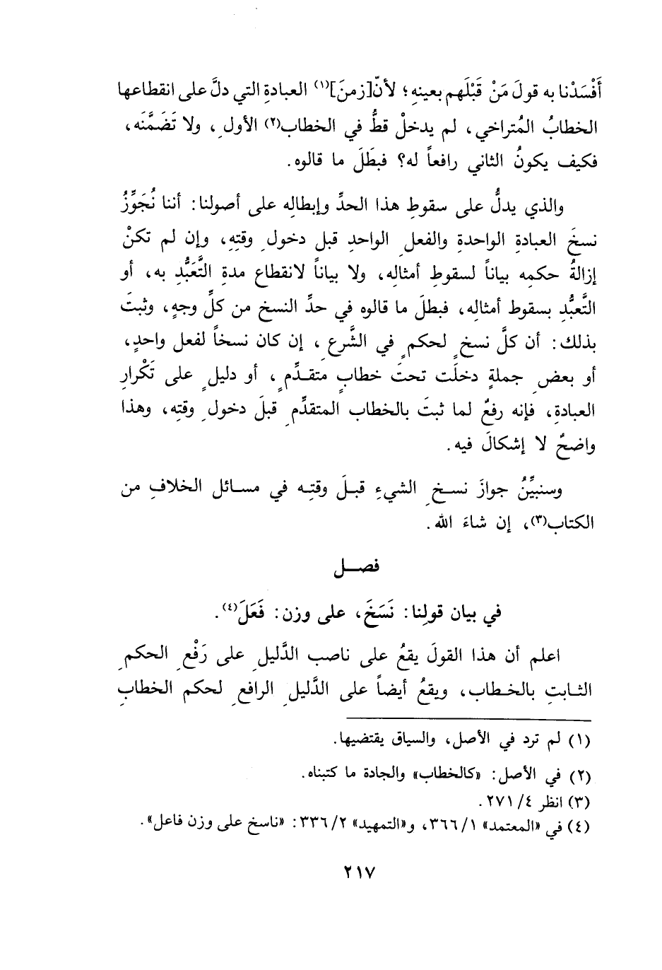 (٤) في "المعتمد" ١/ ٣٦٦، و"التمهيد" ٢/ ٣٣٦: "ناسخ على وزن فاعل".