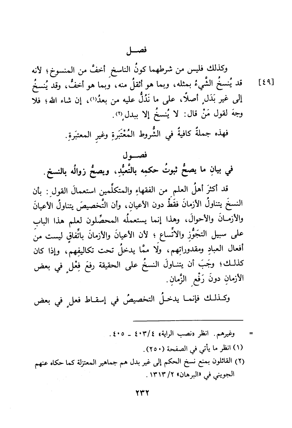 (٢) القائلون بمنع نسخ الحكم إلى غير بدل هم جماهير المعتزلة كما حكاه عنهم الجويني في (البرهان) ٢/ ١٣١٣.