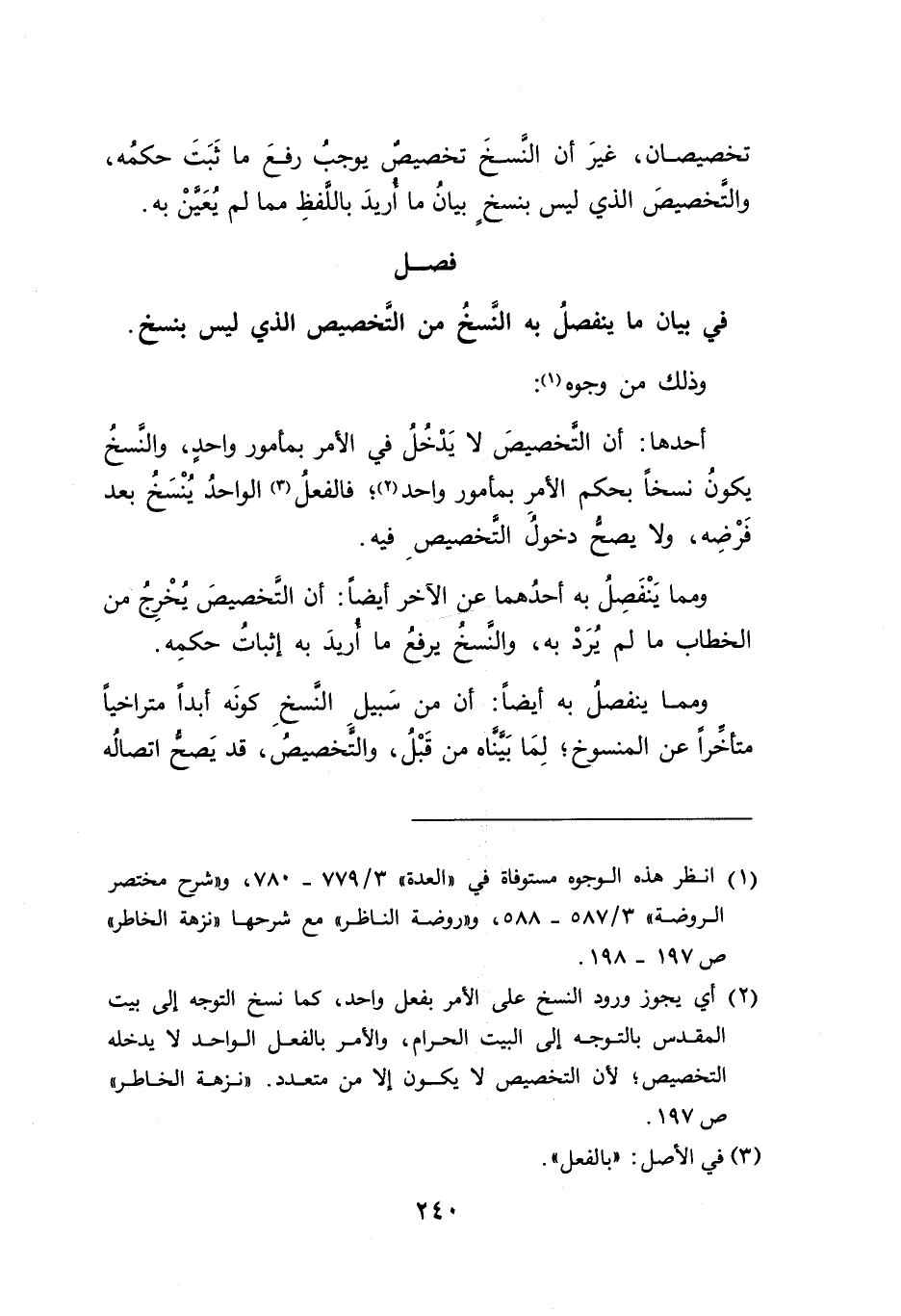في بيان ما ينفصلُ به النسخُ من التَخصيص الذي ليس بنسخ.
