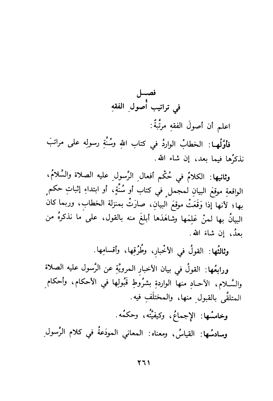 اعلم أن أصولَ الفقهِ مرتَّبةٌ: