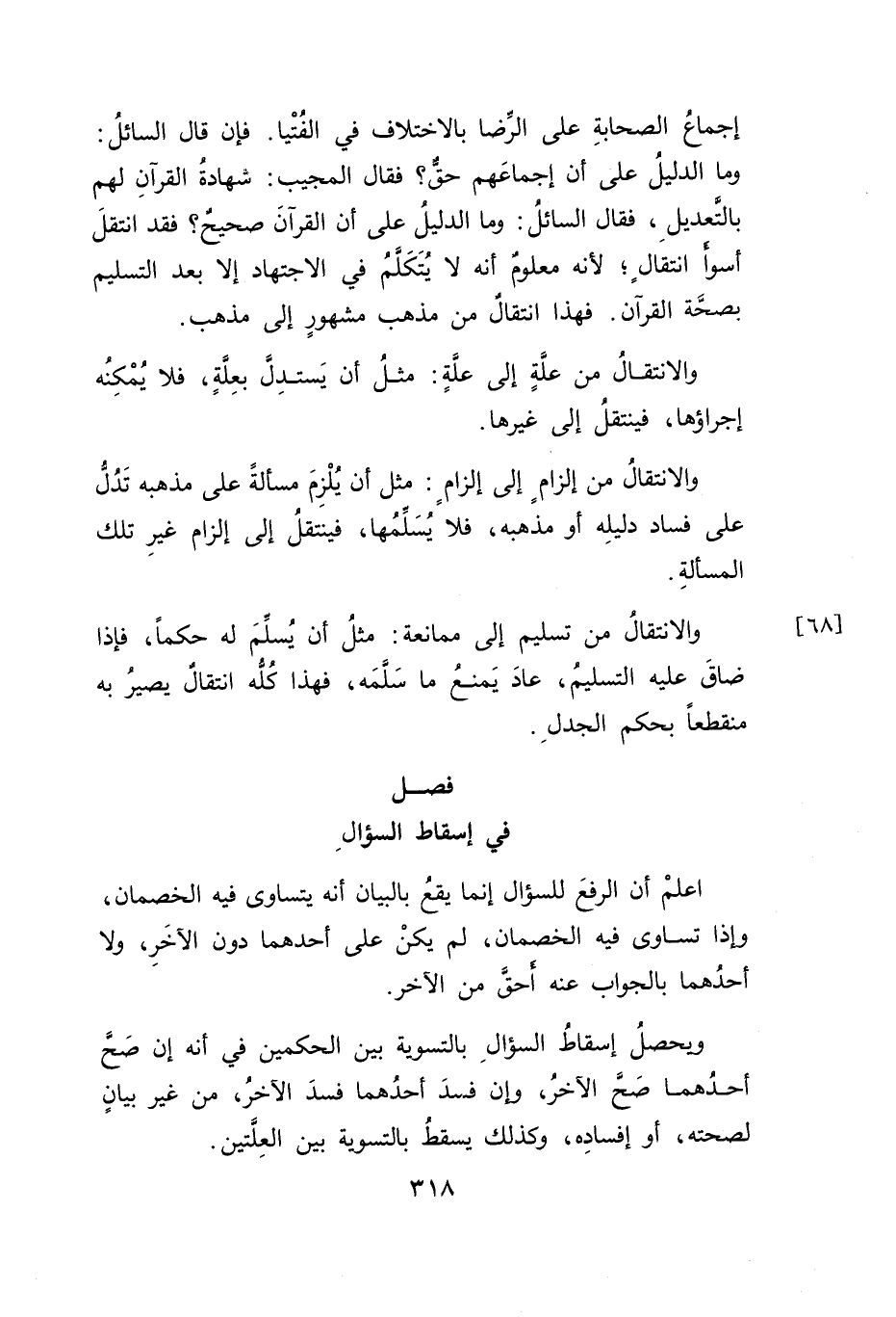 اعلمْ أن الرفعَ للسؤال إنما يقعُ بالبيان أنه يتساوى فيه الخصمان، وإذا تساوى فيه الخصمان، لم يكنْ على أحدهما دون الآخَرِ، ولا أحدُهما بالجواب عنه أَحق من الآخر.