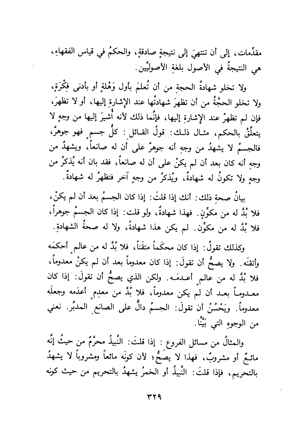 وكذلك تقولُ: إذا كان محكَماً متقَناً، فلا بدَّ له من عالمٍ أحكمَه وأتقنَه. ولا يصحُّ أن تقولَ: إذا كان معدوماً بعد أن لم يكنْ معدوماً، فلا بُدَّ له من عالمٍ أعدمَه. ولكن الذي يصحُّ أن تقولَ: إذا كان معدوماً بعد أن لم يكن معدوماً، فلا بُد من معدِمٍ أعدَمه وجعلَه معدوماً. ويَحسُنُ أن تقولَ: الجسم دالٌّ على الصانعَ المدبِّر. نعني من الوجوهِ التي بَيَّنَّا.