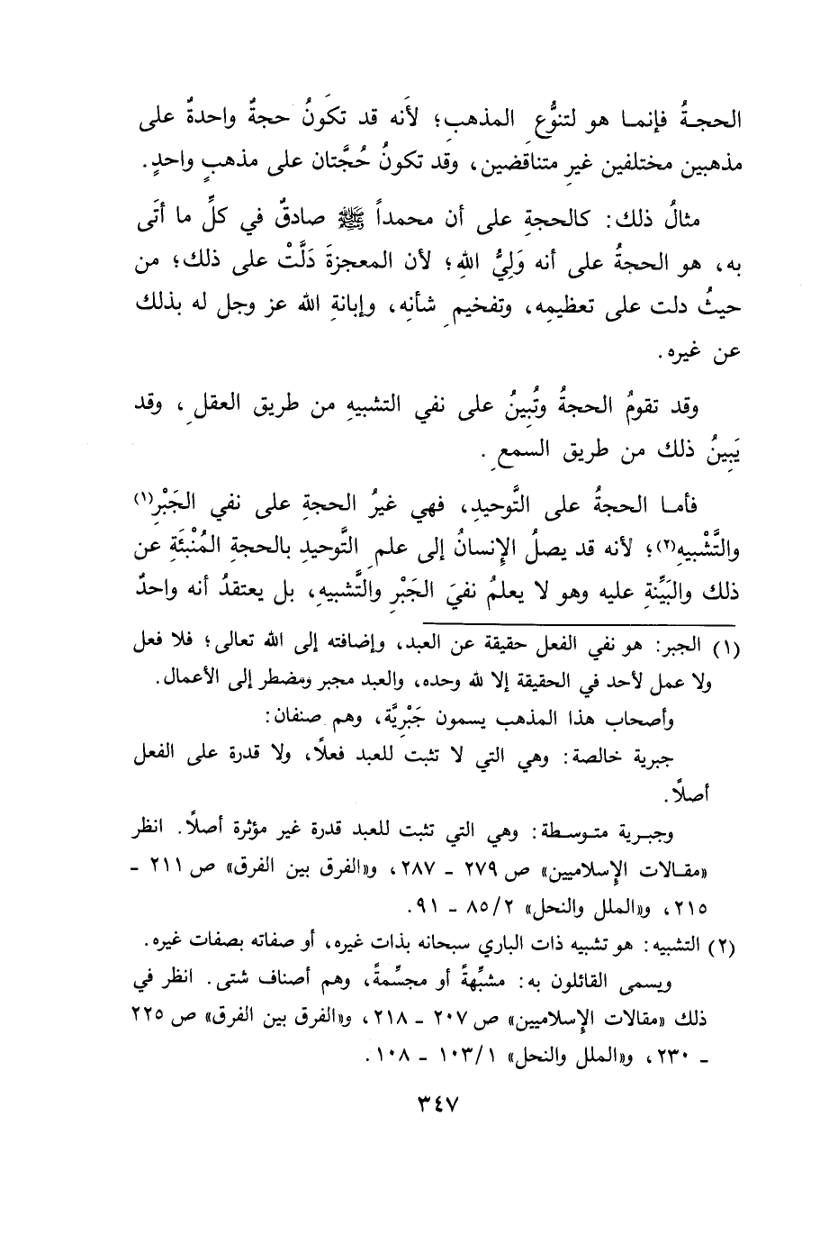 (١) الجبر: هو نفي الفعل حقيقة عن العبد، وإضافته إلى الله تعالى؛ فلا فعل ولا عمل لأحد في الحقيقة إلا لله وحده، والعبد مجبر ومضطر الى الأعمال.