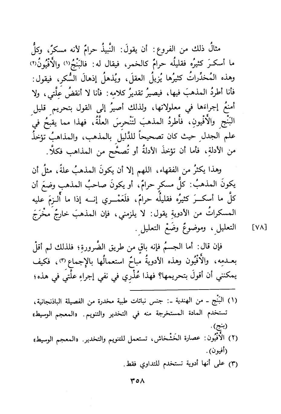 فإن قال: أما الجسمُ فإنه باقٍ من طريق الضَرورةِ؛ فلذلك لم أقلْ بعدمِه، والأفْيُون وهذه الأدويةُ مباح استعمالُها بالإِجماع (٣)، فكيف يمكنني أن أقولَ بتحريمها؟ فهذا عُذْرِي في نفي إجراءِ علتيَ في هذه؛