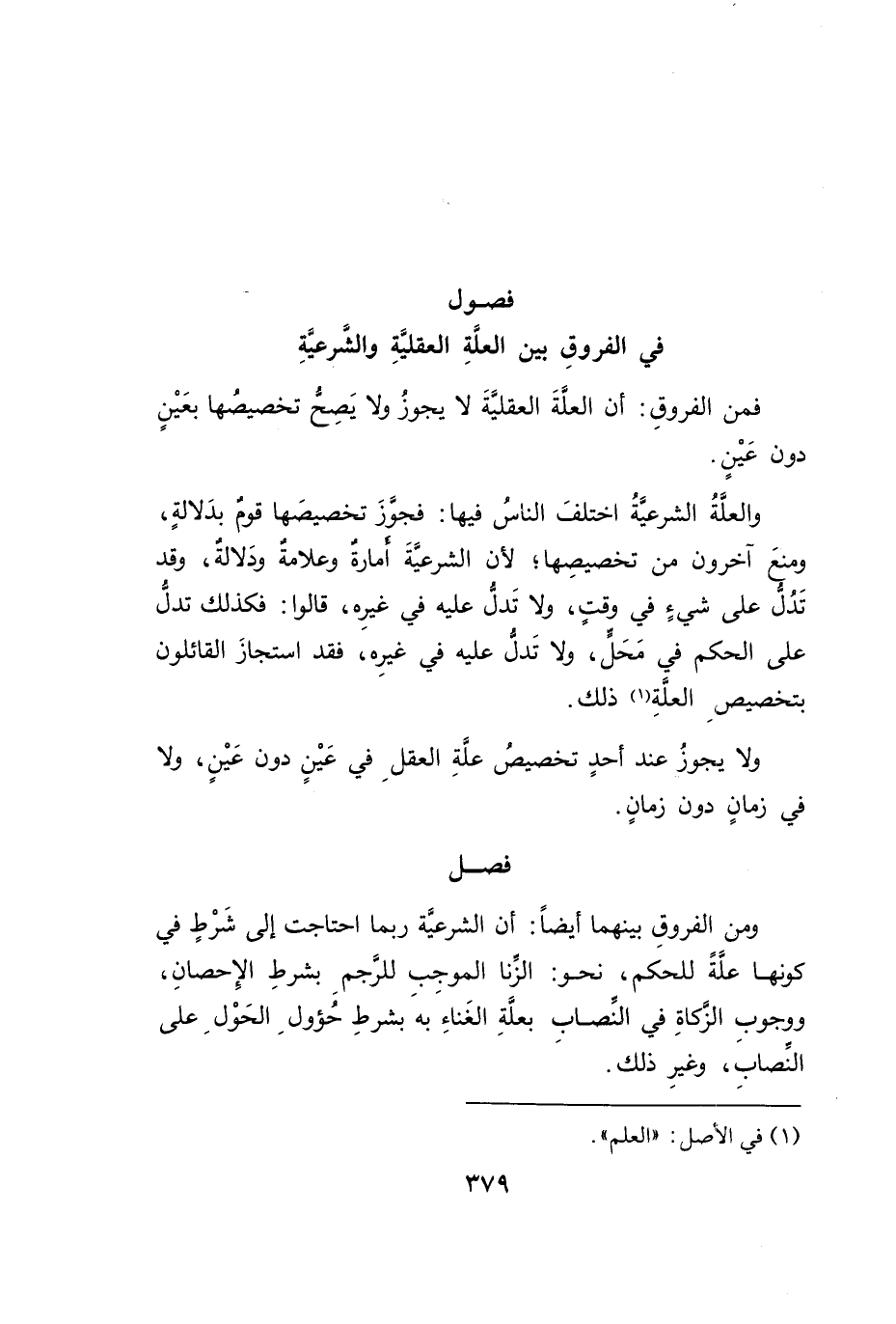 في الفروقِ بين العلَّةِ العقليَّةِ والشَرعيَّةِ