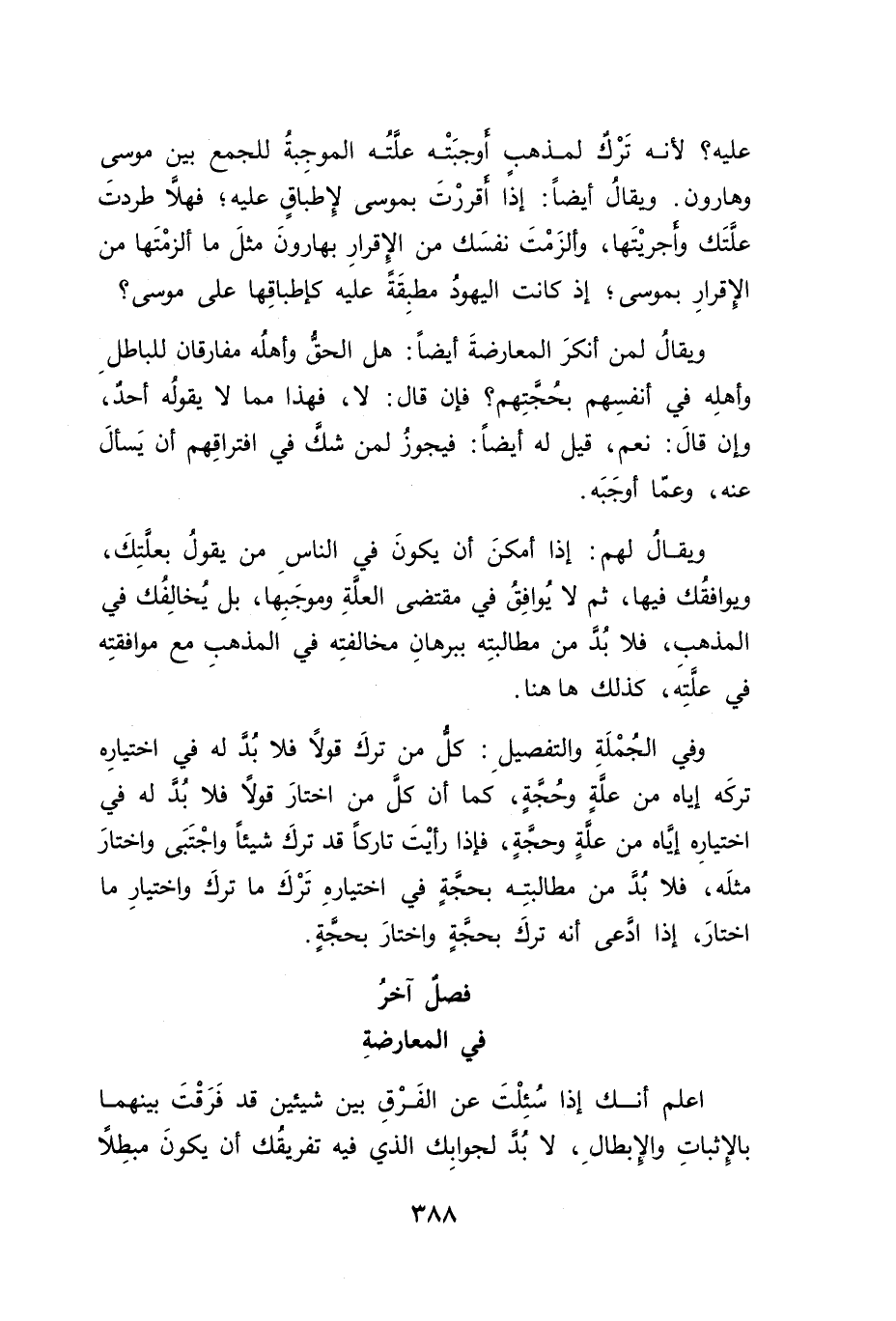 وفي الجُمْلَةِ والتفصيلِ: كلُّ من تركَ قولاً فلا بُدَّ له في اختيارِه تركَه إياه من علَّه وحًجةٍ، كما أن كلَّ من اختارَ قولًا فلا بُد له في اختيارِه إياه من علَّةٍ وحجةٍ، فإذا رأيْتَ تاركاً قد تركَ شيئاً واجْتَبَى واختارَ مثلَه، فلا بُد من مطالبتِه بحجَّةٍ في اختيارهِ تَرْكَ ما تركَ واختيارِ ما اختارَ، إذا ادَّعى أنه تركَ بحجَّةٍ واختارَ بحجَّةٍ.
