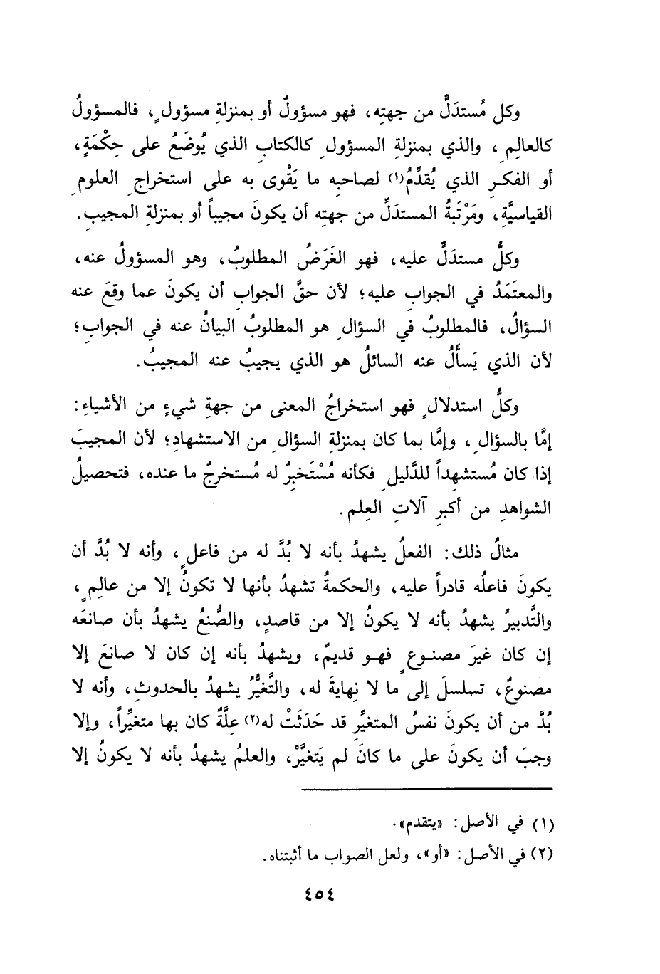 وكل مُستدَلٍّ من جهتِه، فهو مسؤول أو بمنزلةِ مسؤول، فالمسؤولُ كالعالِمِ، والذي بمنزلةِ المسؤولِ كالكتابِ الذي يُوضَعُ على حِكْمةٍ، أو الفكرِ الذي يُقدمُ (١)، لصاحبه ما يَقْوى به على استخراجِ العلوم القياسيةِ، ومَرْتَبةُ المستدَلِّ من جَهتِه أدت يكونَ مجيباً أو بمنزلةِ المجيبِ.