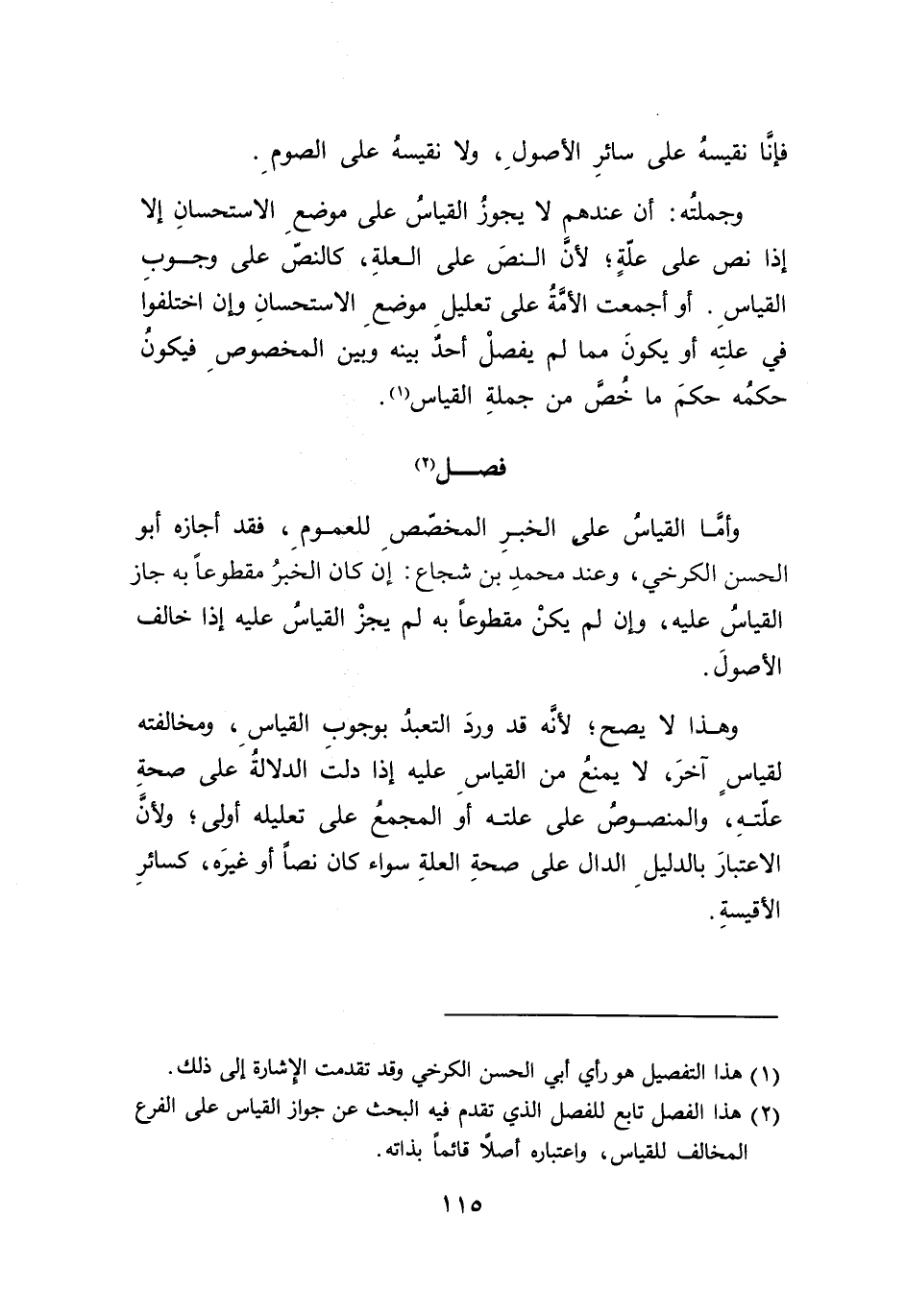 (٢) هذا الفصل تابع للفصل الذي تقدم فيه البحث عن جواز القياس على الفرع المخالف للقياس، واعتباره أصلًا قائماً بذاته.