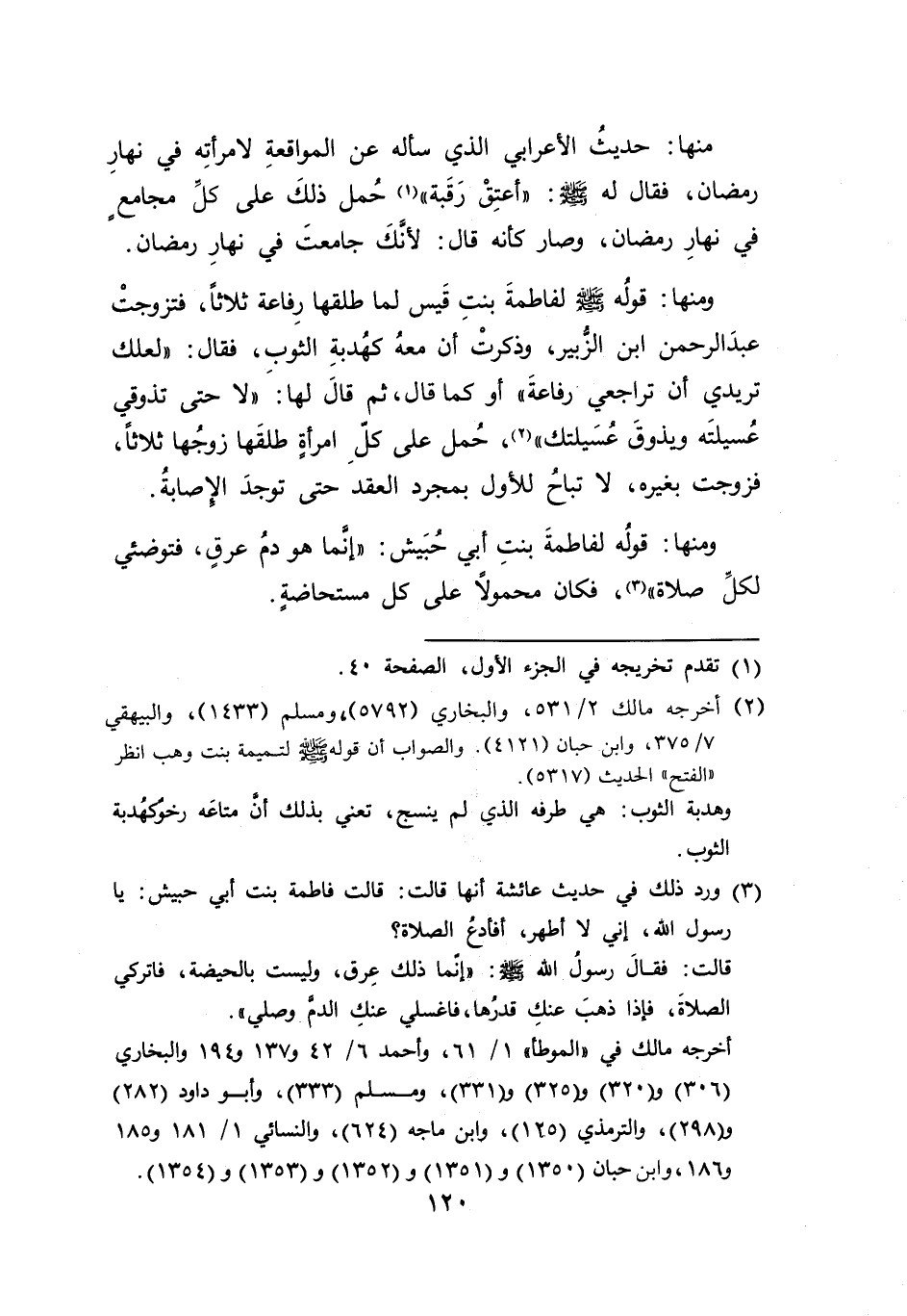 (٣) ورد ذلك في حديث عائشة أنها قالت: قالت فاطمة بنت أبي حبيش: يا رسول الله، إني لا أطهر، أفأدع الصلاة؟