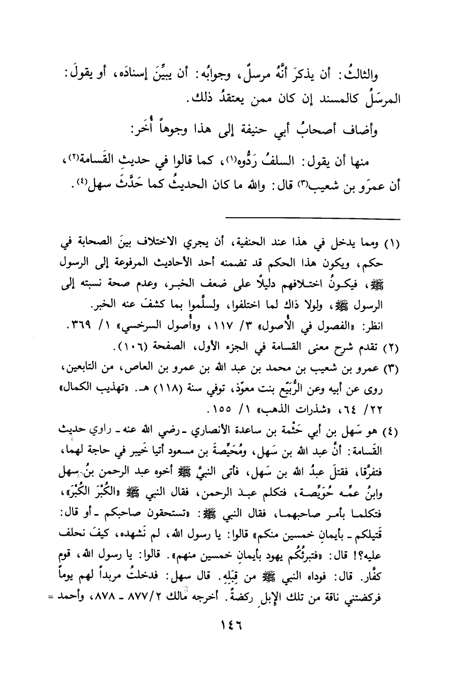 منها أن يقول: السلف رَدُّوه (١)، كما قالوا في حديثِ القَسامة (٢)، أن عمرَو بن شعيب (٣) قال: والله ما كان الحديثُ كما حَدثَ سهل (٤).
