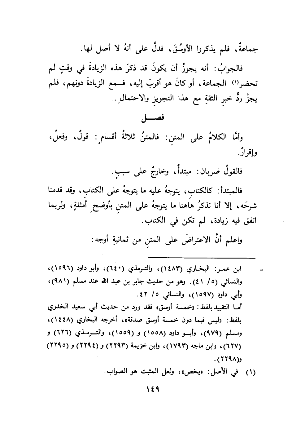 وأما الكلامُ على المتنِ: فالمتنُ ثلاثةُ أقسام: قولٌ، وفعلٌ، واقرارٌ.