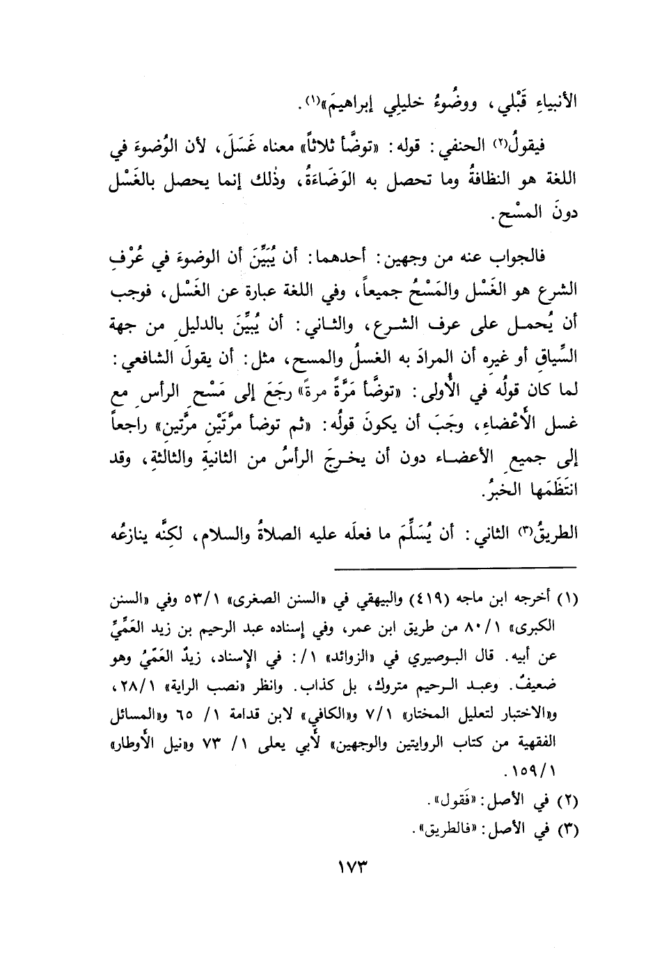 فيقولُ (٢) الحنفي: قوله: "توضأ ثلاثاً" معناه غَسَلَ، لأن الوُضوءَ في اللغة هو النظافةُ وما تحصل به الوَضَاءَةُ، وذلك إنما يحصل بالغَسْل دونَ المسْح.