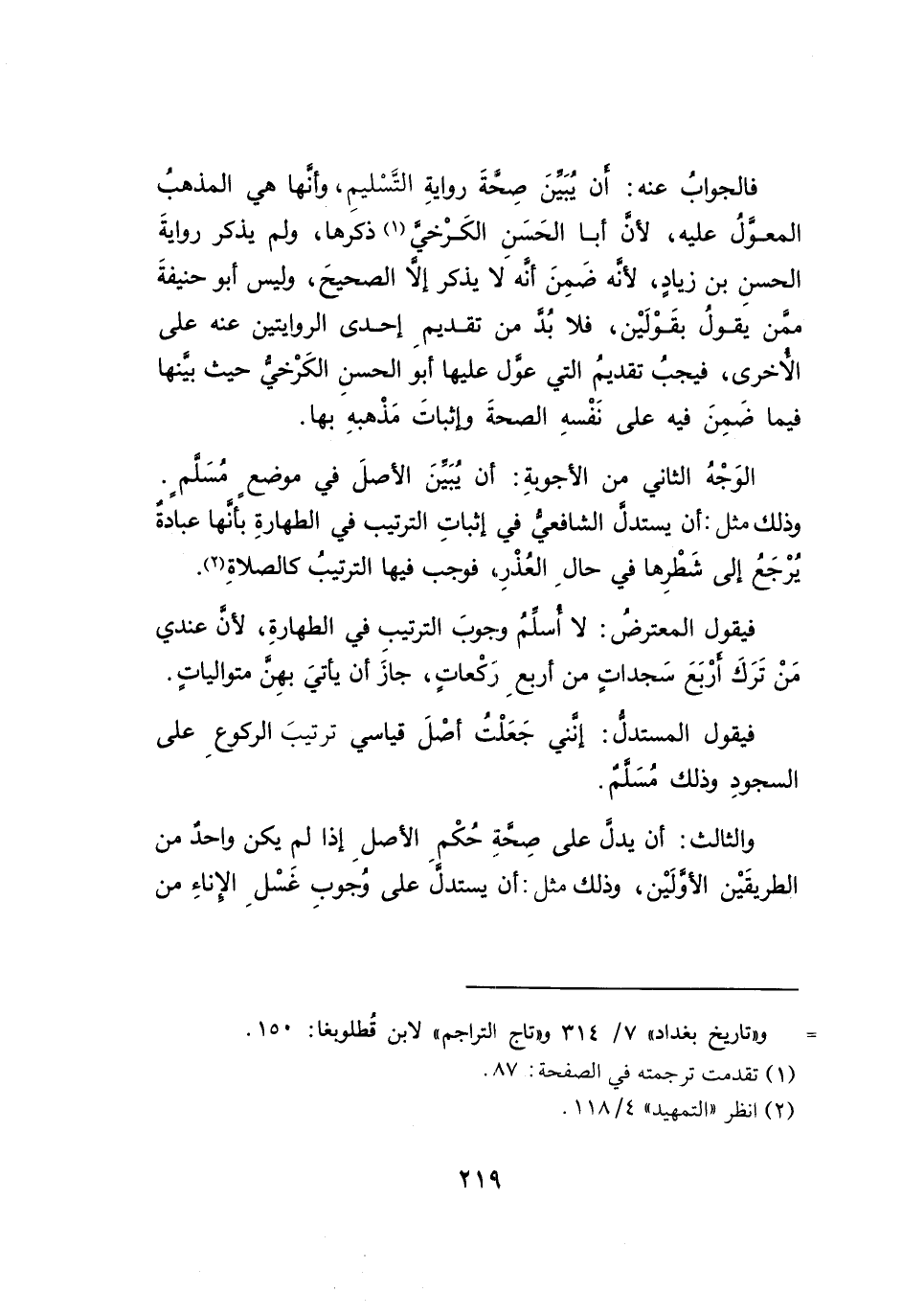 والثالث: أن يدل على صِح حُكْمِ الأصلِ إذا لم يكن واحد من الطريقَيْن الأولَيْن، وذلك مثل: أن يستدل على وُجوبِ غَسْلِ الاناءِ من