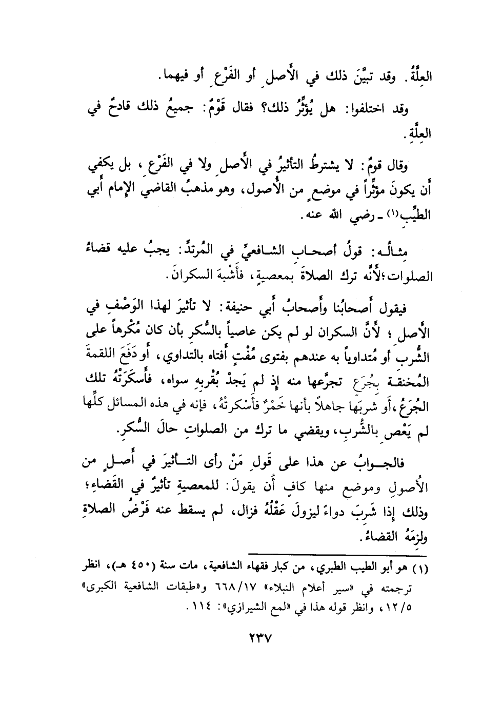 (١) هو أبو الطيب الطبري، من كبار فقهاء الشافعية، مات سنة (٤٥٠ هـ)، انظر ترجمته في "سير أعلام النبلاء" ١٧/ ٦٦٨ و"طبقات الشافعية الكبرى" ٥/ ١٢، وانظر قوله هذا في "لمع الشيرازي": ١١٤.