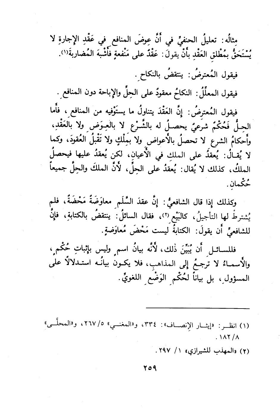 فيقول المُعترِضُ: إن العَقْدَ يتناولُ ما يستَوْفيه من المنافعِ، فأمَّا الحِل فَحُكْم شرعيٌ يحصلُ له بالشرْع لا بالعِوَضِ ولا بالعَقْدِ، وأحكامُ الشرعِ لا تحصلُ بالأعواض ولا بمِلْكٍ ولا تَقْبلُ العُقودَ، وكما لا يُقالُ: يُعقدُ على الملكِ في الأَعيان، لكن يُعقدُ عليها فيحصلُ الملكُ، كذلك لا يُقال: يُعقدُ على الحِلِّ، لأن الملكَ والحِل جميعاً حُكْمانِ.