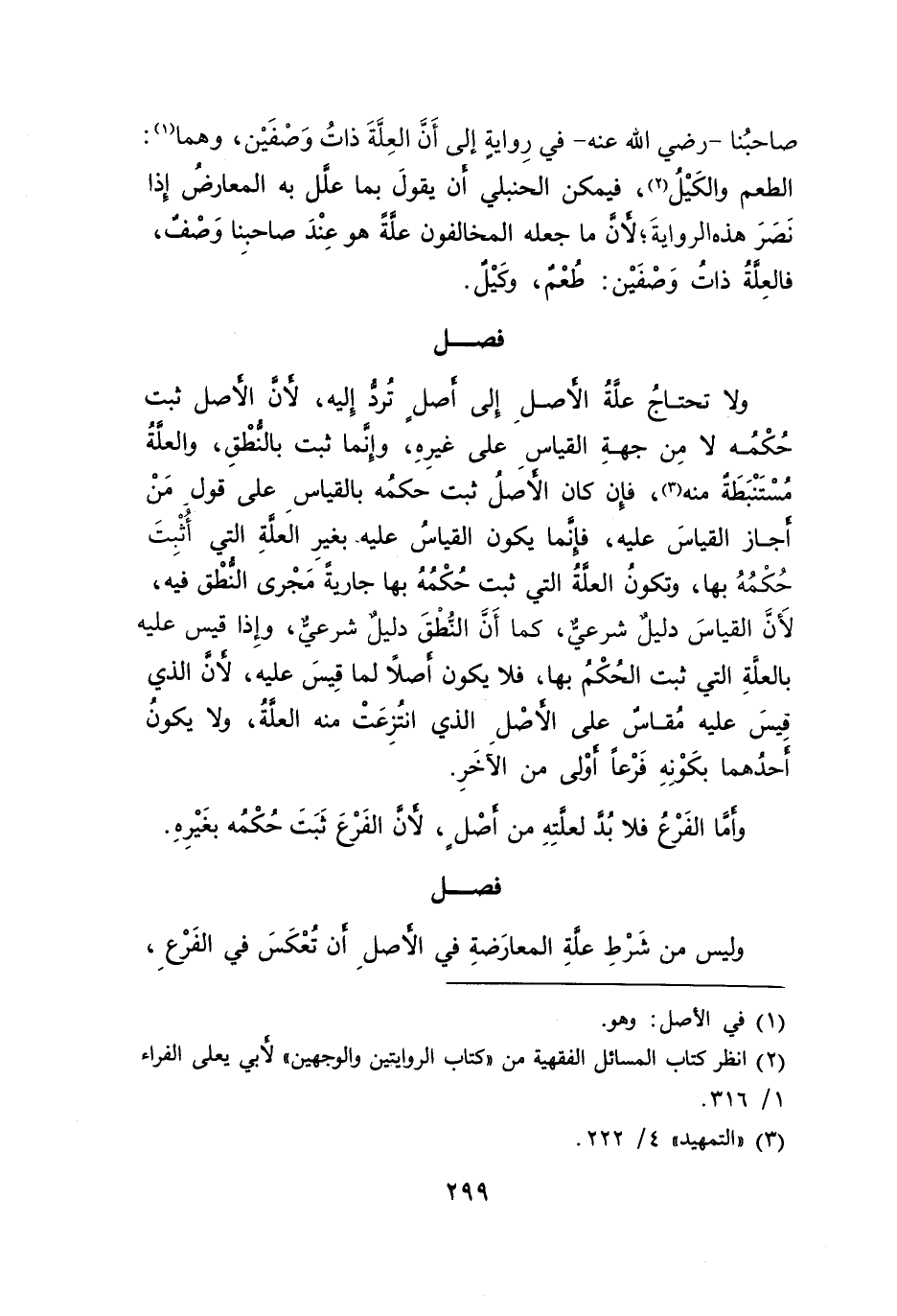 ولا تحتاجُ علَّةُ الأصلِ إلى أصلٍ تُردُّ إِليه، لأن الأصل ثبت حُكْمُه لا مِن جهةِ القياسِ على غيرِهِ، وإنما ثبت بالنُّطْقِ، والعلَّةُ مُسْتَنْبَطَة منه (٣)، فإن كان الأصلُ ثبت حكمُه بالقياسِ على قول مَنْ أجاز القياسَ عليه، فانما يكون القياسُ عليه بغيرِ العلَّةِ التي أُثْبِتَ حُكْمُهُ بها، وتكونُ العلةُ التي ثبت حُكْمُهُ بها جاريةً مَجْرى النُّطْق فيه، لَأنَ القياسَ دليلٌ شرعيٌ، كما أَن النُّطْقَ دليلٌ شرعيٌ، وإِذا قيس عليه بالعلَّةِ التي ثبت الحُكْمُ بها، فلا يكون أصلًا لما قِيسَ عليه، لأن الذي قيسَ عليه مُقاس على الأصْلِ الذي انتُزِعَتْ منه العلةُ، ولا يكونُ أَحدُهما بكَوْنِهِ فَرْعاً أوْلى من الآخَرِ.