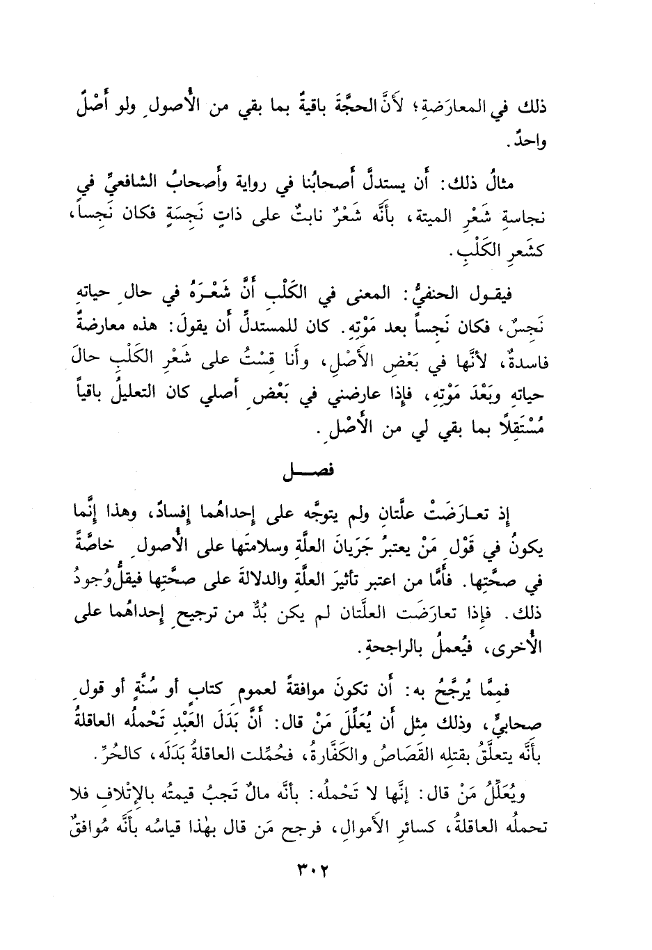 فيقول الحنفيُّ: المعنى في الكَلْب أنَّ شَعْرَهُ في حالِ حياتهِ نَجِس، فكان نَجِساً بعد مَوْتِهِ. كان للمسَتدل أنَّ يقولَ: هذه معارضةٌ فاسدةٌ، لأنَّها في بَعْضِ الأَصْلِ، وأَنا قِسْتُ على شَعْرِ الكَلْبِ حالَ حياتهِ وبعد مَوْتِهِ، فإِذا عارضني في بَعْضِ أصلي كان التعليلُ باقياً مُسْتَقِلًا بما بقي لي من الأصْلِ.