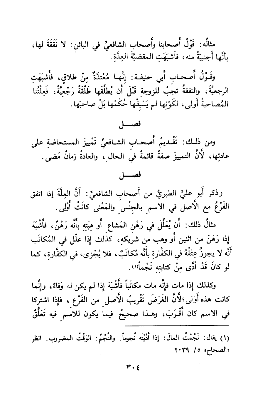 ومن ذلك: تَقْديم أصحاب الشافعيِّ تَمْييزَ المستحاضةِ على عادتِها، لأن التمييزَ صفةٌ قائمةٌ فيَ الحالِ، والعادةُ زمانٌ مَضى.