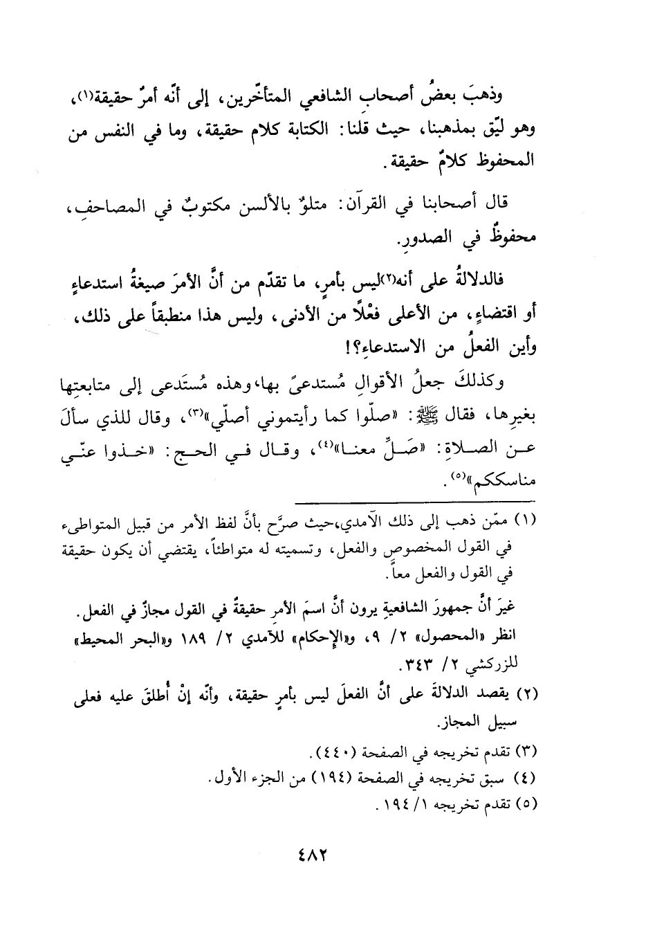 وذهبَ بعضُ أصحاب الشافعي المتأخّرين، إلى أنه أمر حقيقة (١)، وهو ليق بمذهبنا، حيث قَلنا: الكتابة كلام حقيقة، وما في النفس من المحفوظ كلام حقيقة.
