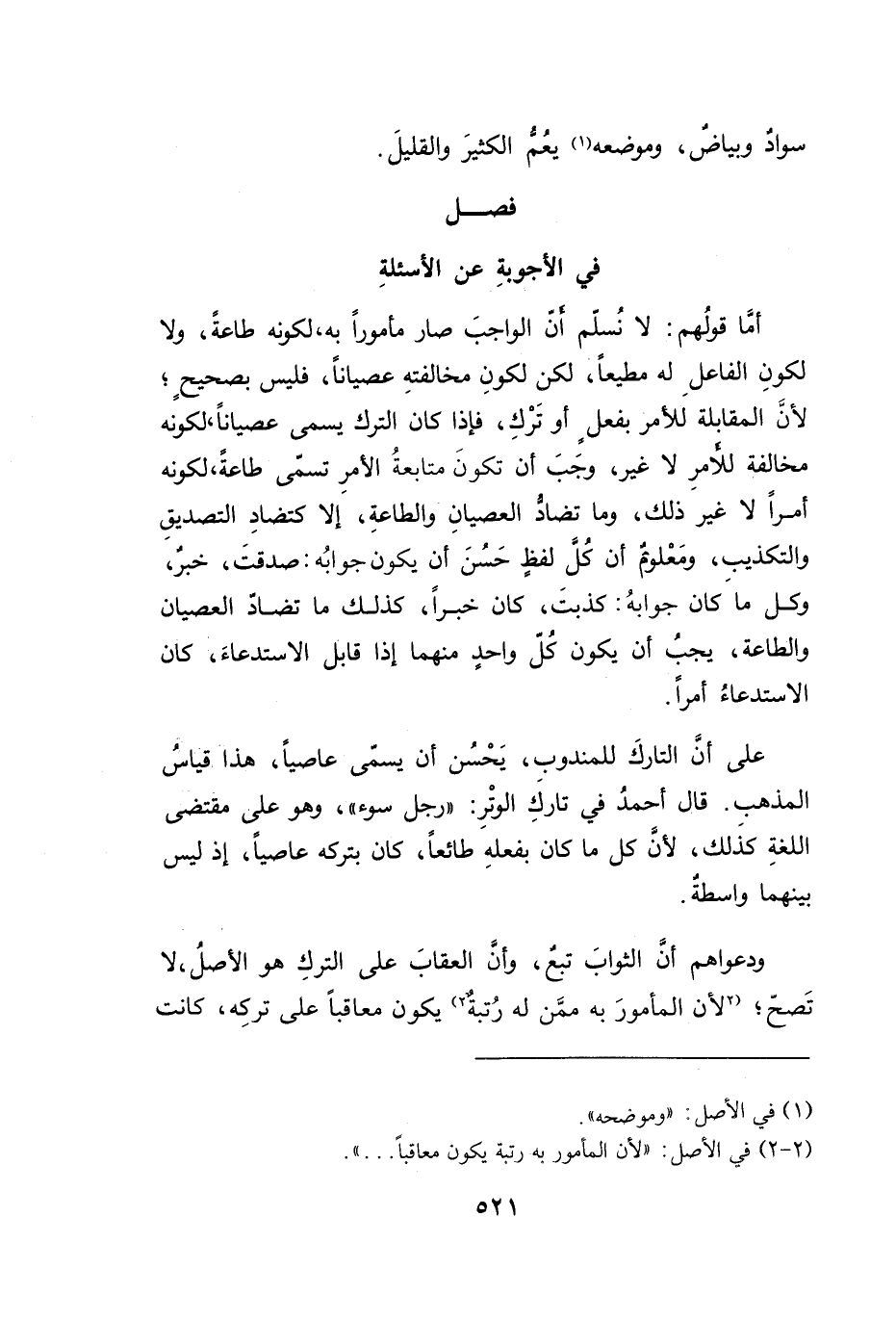 ودعواهم أنَ الثوابَ تبعٌ، وأن العقابَ على التركِ هو الأصلُ، لا تَصحّ؛ (٢ لأن المأمورَ به مقَن له رُتبة ٢) يكون معاقبا على تركِه، كانت