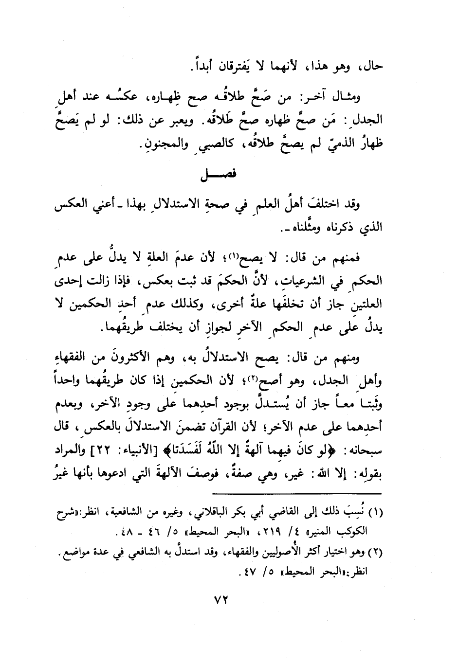 (١) نُسِبَ ذلك إلى القاضي أبي بكر الباقلاني، وغيره من الشافعية، انظر؛ "شرح الكوكب المنير"٤/ ٢١٩، "البحر المحيط" ٥/ ٤٦ - ٤٨.