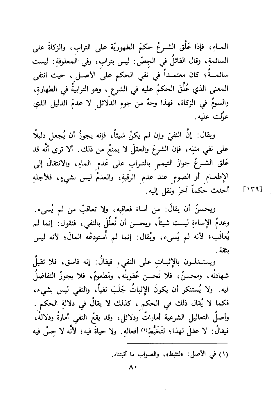 وأصلُ التعاليل الشرعية أماراتٌ ودلائل، وقد يقعُ النفي أمارة ودلالةً، فيقالُ: لا عقلَ لهذا؛ لتَخَبُّطِ (١) أفعالهِ. ولا حياةَ فيه؛ لأنه لا حِس فيه