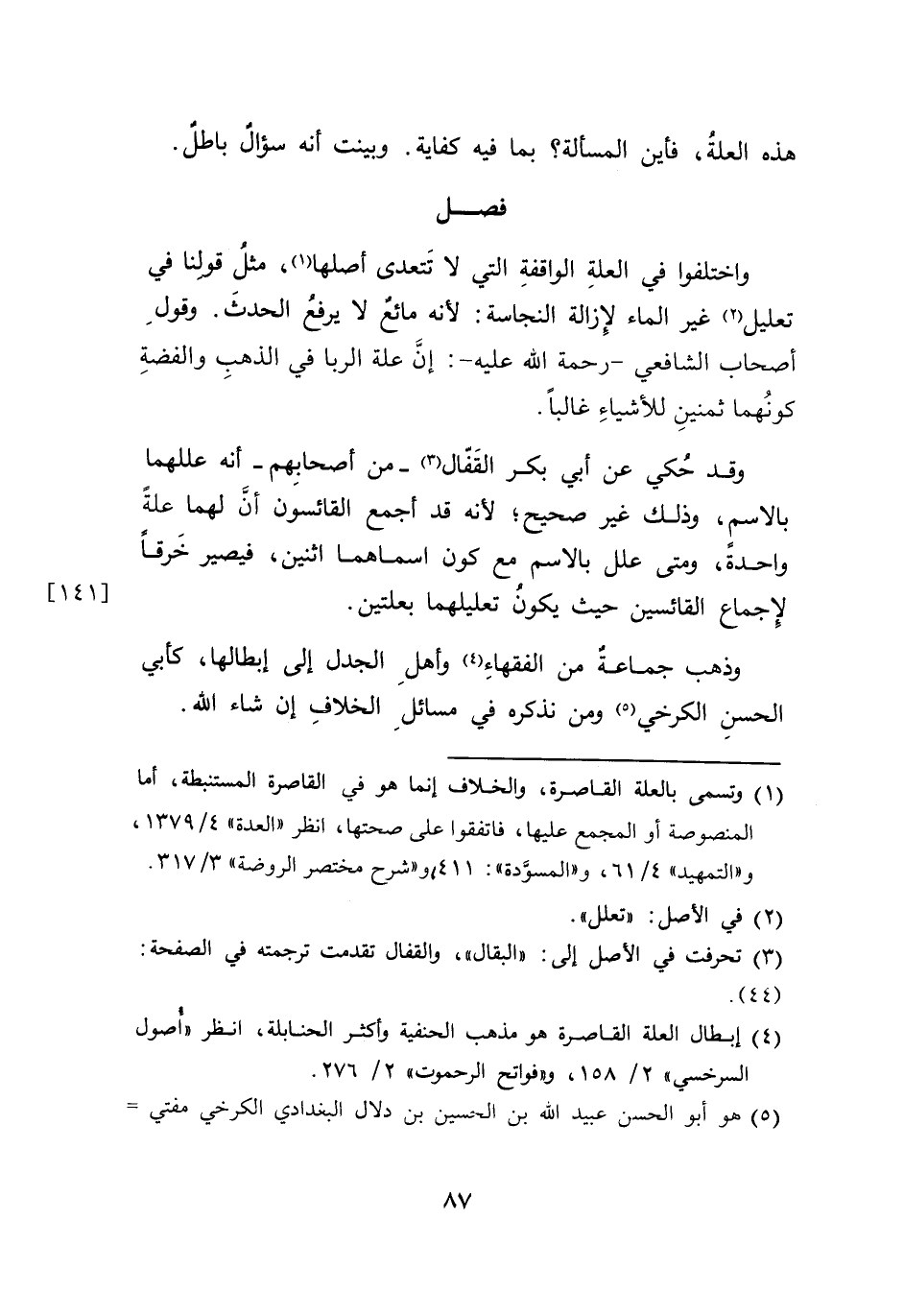 وذهب جماعة من الفقهاءِ (٤) وأهلِ الجدل إلى إبطالها، كأبي الحسنِ الكرخي (٥) ومن نذكره في مسائلِ الخلافِ إن شاء الله.