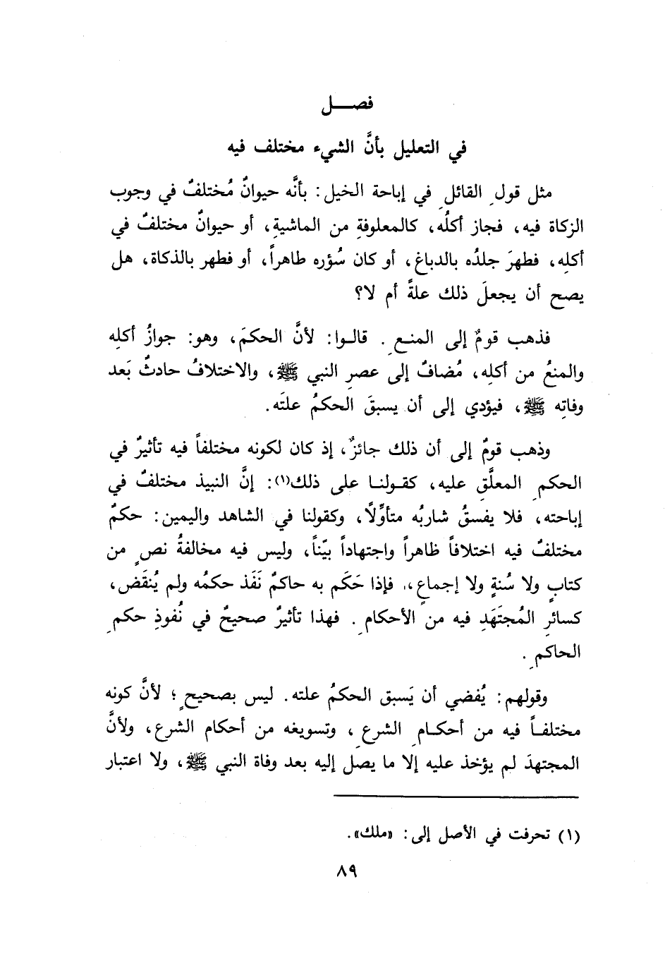 في التعليل بأن الشيء مختلف فيه