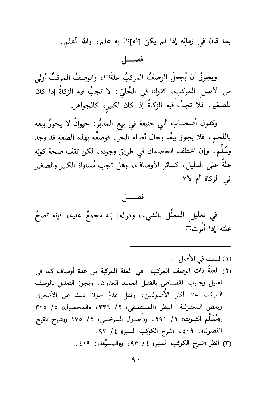 (٢) العلّةُ ذات الوصف المركب: هي العلَّة المركبة من عدة أوصاف كما في تعليل وجوب القصاص بالقتل العمد العدوان. ويجوز التعليل بالوصف المركب عند أكثر الأُصوليين، ونقل عدمُ جواز ذلك عن الآشعري وبعض المعتزلة. انظر "المستصفى" ٢/ ٣٣٦، "المحصول" ٥/ ٣٠٥ و"مُسَلم الثبوت" ٢/ ٢٩١، و"أصول السرخسي" ٢/ ١٧٥ و"شرح تنقيح الفصول": ٤٠٩، "شرح الكوكب المنير" ٤/ ٩٣.