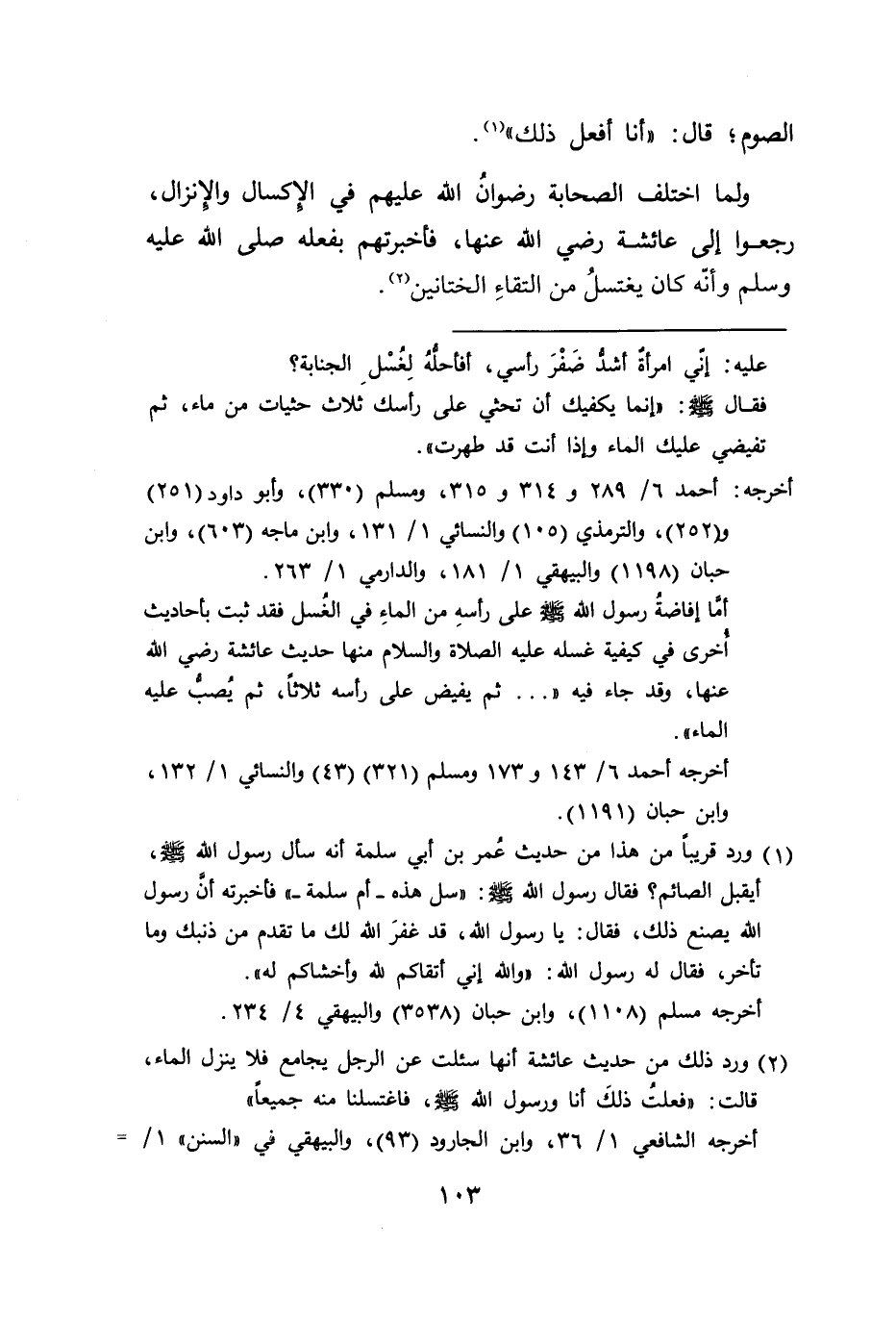 (٢) ورد ذلك من حديث عائشة أنها سئلت عن الرجل يجامع فلا ينزل الماء، قالت:" فعلتُ ذلكَ أنا ورسول الله صلى الله عليه وسلم، فاغتسلنا منه جميعاً"