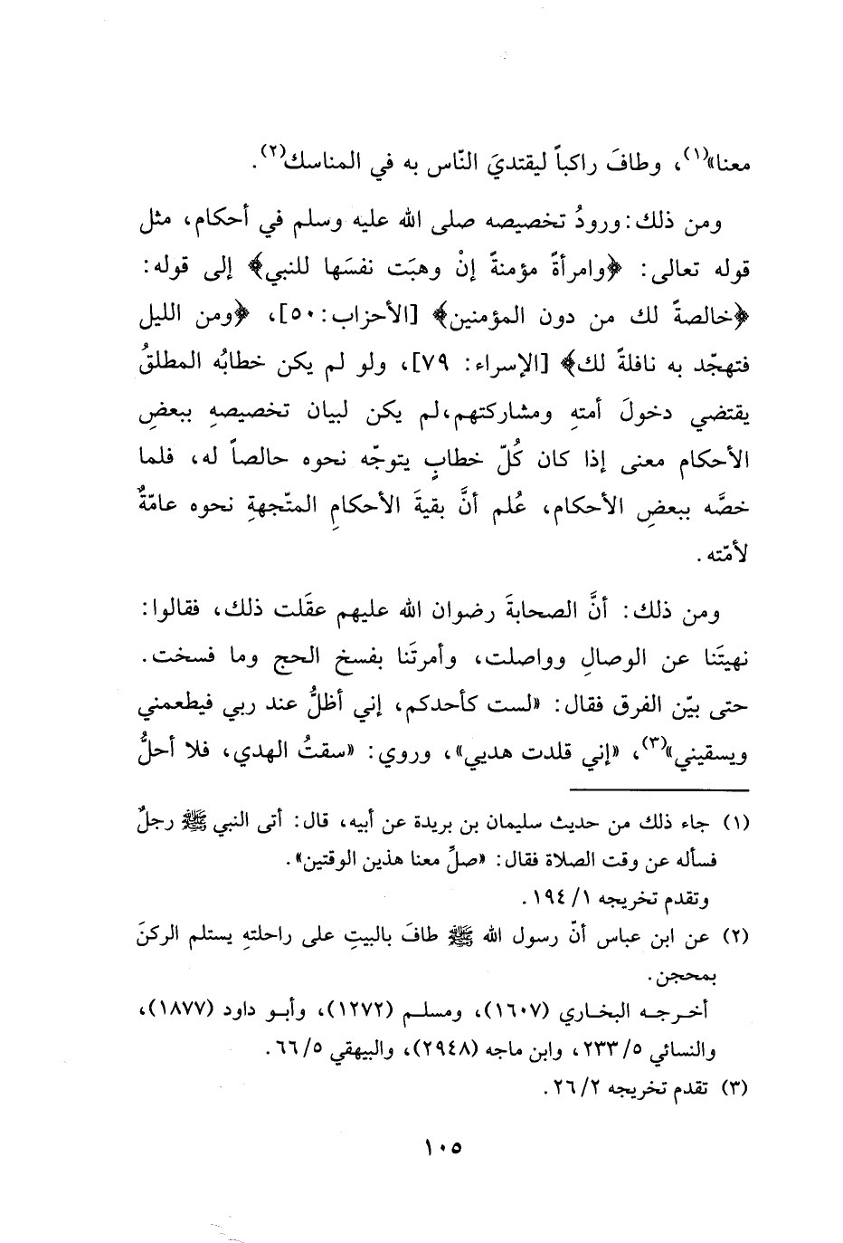 ومن ذلك: أنَّ الصحابةَ رضوان الله عليهم عقَلت ذلك، فقالوا: نهيتَنا عن الوصالِ وواصلت، وأمرتَنا بفسخ الحج وما فسخت.