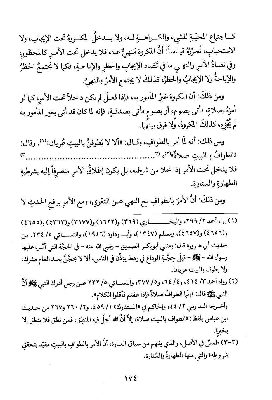 ومن ذلكَ: أن الأمرَ بالطوافِ مع النهي عن التعّري، ومع الأمرِ برفع الحدثِ لا