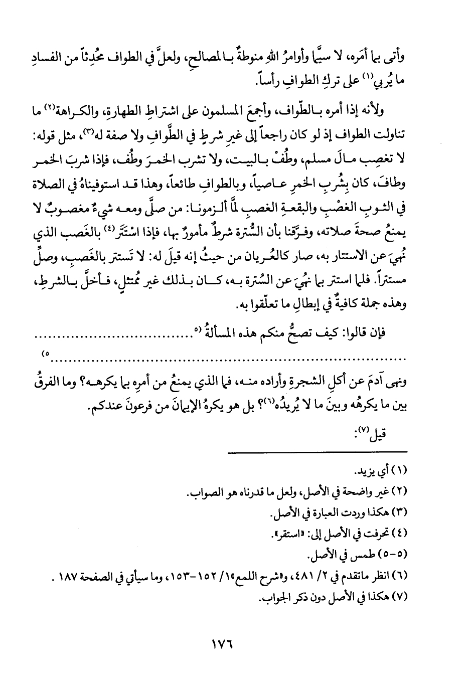 (٧) هكذا في الأصل دون ذكر الجواب.