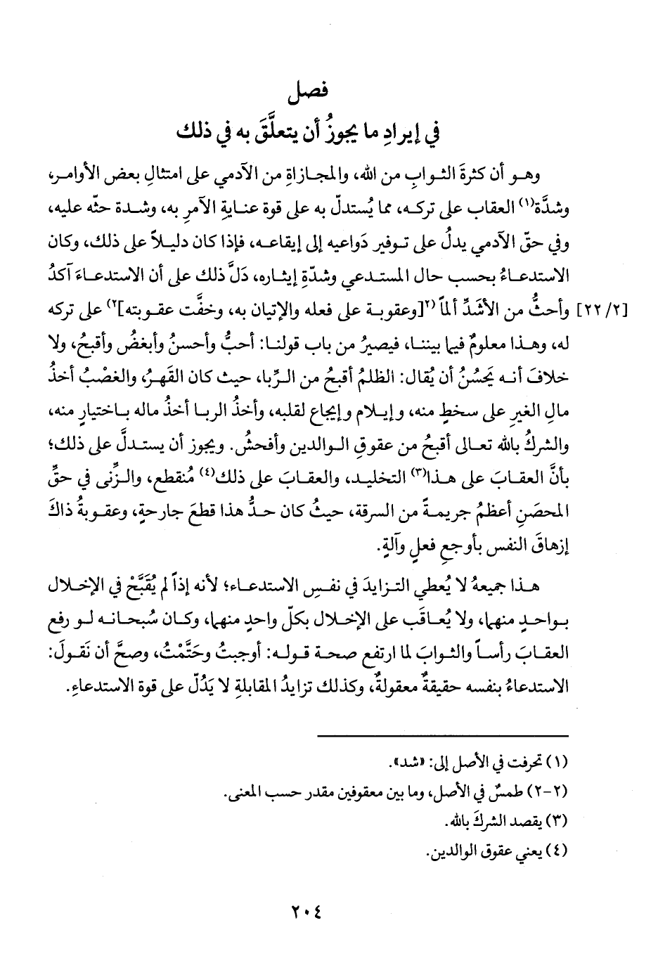 هذا جميعهُ لا يُعطي التزايدَ في نفسِ الاستدعاء؛ لأنه إذاً لم يقبَّحْ في الإخلال بواحدٍ منهما، ولا يُعاقَب على الإخلال بكلّ واحدِ منهما، وكان سُبحانه لو رفع العقابَ رأساً والثوابَ لما ارتفع صحة قوله: أوجبتُ وحَتَّمْتُ، وصحَ أن نَقولَ: الاستدعاءُ بنفسه حقيقةٌ معقولةٌ، وكذلك تزايدُ المقابلةِ لا يَدُلّ على قوة الاستدعاءِ.