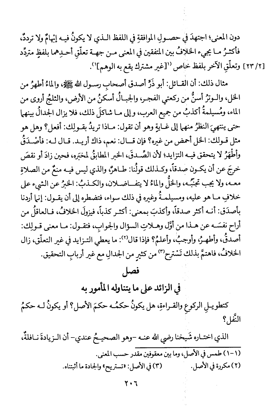 دون المعنى؛ اجتهدَ في حصولِ الموافقةِ في اللفظ الذي لا يكونُ فيه إبْهام ولا ترددٌ، فأكثرُ ما يجيء الخلافُ بين المتفقين في المعنى من جهة تعلّقِ أحدِهما بلفظٍ متردد وتعلّقِ الآخر بلفظ خاص (١ [غير مشترك يقع به الوهم] ١).