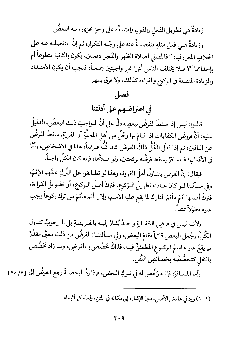 ولأنه ليس في فرضِ الكفايةِ واحدٌ يُشارُ إليه بالفريضةِ بل الوجوبُ تناول الكُلَّ، وجُعل البعض قائماً مقامَ البعض، وفي مسألتنا: الفرضُ من ذلك معين مقدَّرٌ بما يقعُ عليه اسمُ الركوعِ المطمئنِّ فيه، فذاكَ تخصَّص بالفرضِ، وما زاد تخصَّص بالنفلِ كتخصُّصِّه بخصائصِ النَّفل.