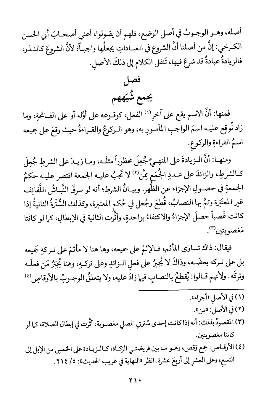 أصله، وهو الوجوبُ في أصل الوضع، فلهم أن يقولوا، أعني أصحابَ ابي الحسن الكرخي: إنَّ من أصلنا أنَّ الشروع في العباداتِ يجعلُها واجباً؛ لأنَّ الشروعَ كالنذر، فالزيادةُ عبادةٌ قد شرعَ فيها، تَنقل الكلام إلى ذلكَ الأصلِ.