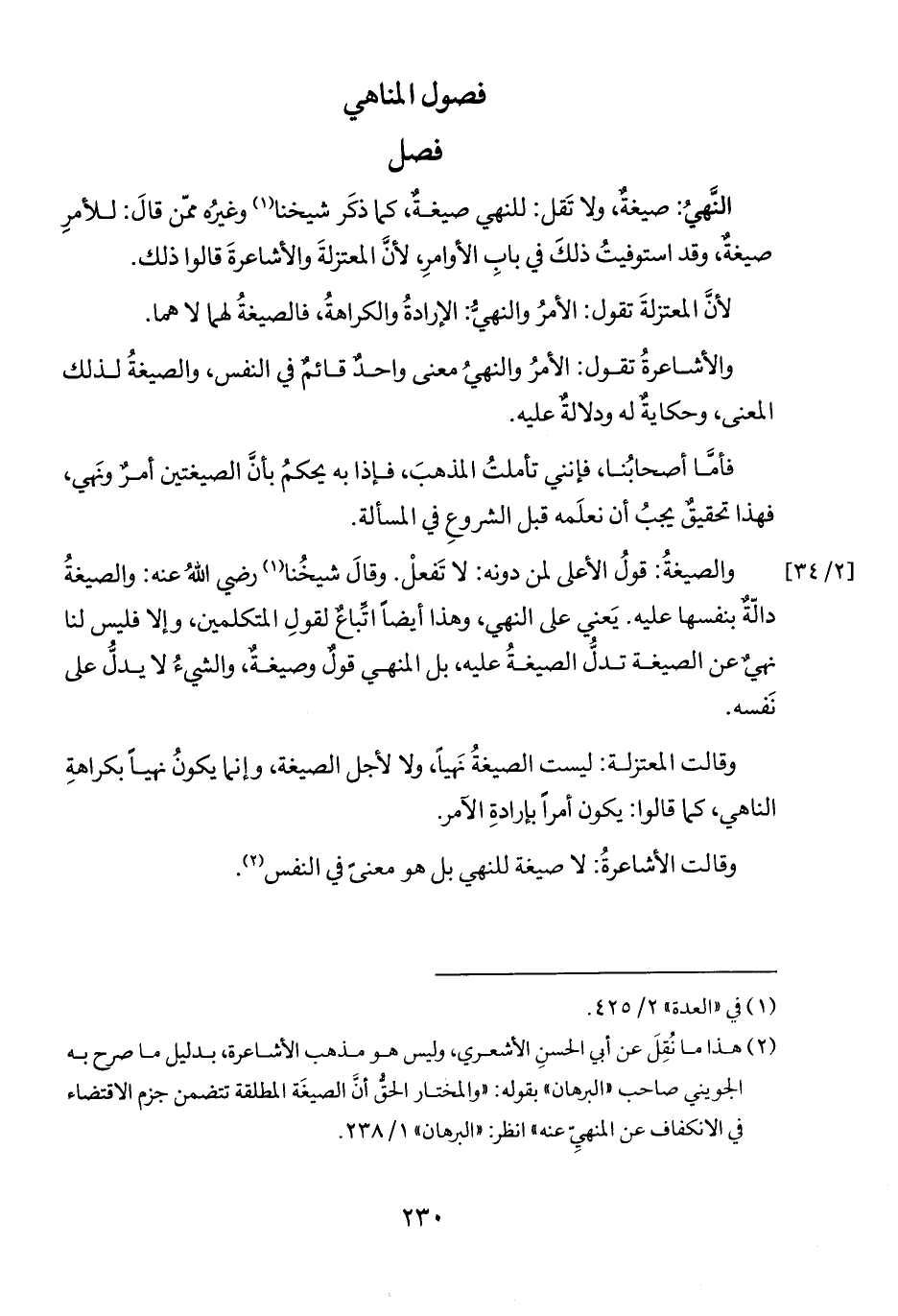 (٢) هذا ما نُقِلَ عن أي الحسنِ الأشعري، وليس هو مذهب الأشاعرة، بدليل ما صرح به الجويني صاحب "البرهان" بقوله: "والمختار الحقُّ أنَ الصيغَة المطلقة تتضمن جزم الاقتضاء فى الانكفاف عن المنهيِّ عنه" انظر: "البرهان" ١/ ٢٣٨.