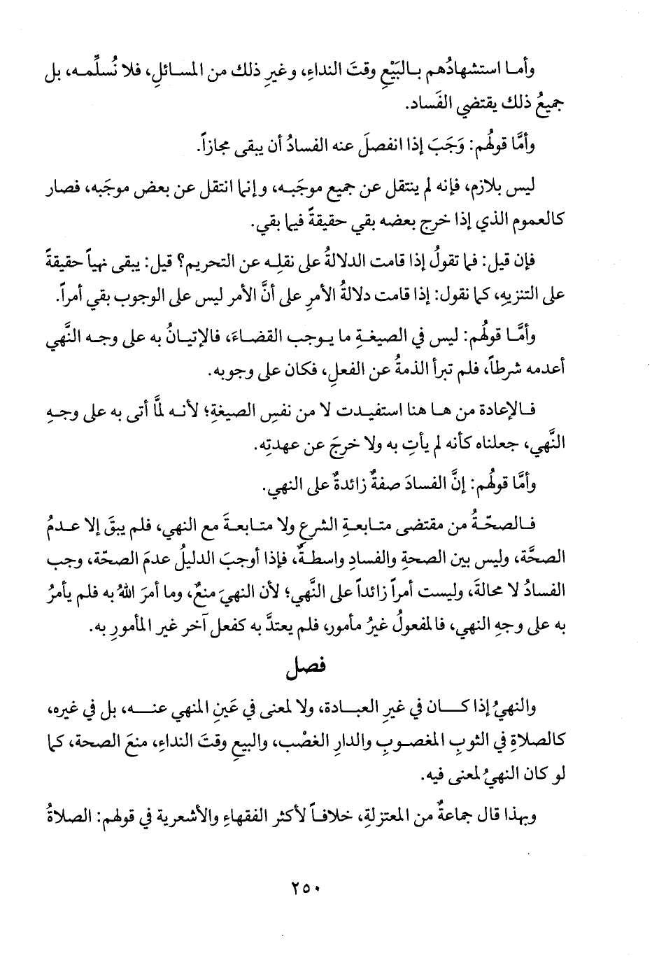 فالصحّةُ من مقتضى متابعةِ الشرع ولا متابعةَ مع النهي، فلم يبقَ إلا عدمُ الصحة، وليس بين الصحةِ والفسادِ واسطةٌ، فاذا أوجبَ الدليلُ عدمَ الصحّة، وجب الفسادُ لا محالةَ، وليست أمراً زائداً على النَهي؛ لأن النهيَ منعٌ، وما أمرَ اللهُ به فلم يأمرُ به على وجهِ النهي، فالمفعولُ غيرُ مأمور، فلم يعتد به كفعل آخر غير المأمورِ به.
