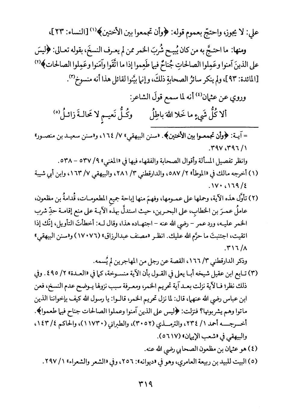 = آية: {وَأَنْ تَجْمَعُوا بَيْنَ الْأُخْتَيْنِ}. "سنن البيهقي" ٧/ ١٦٤، و"سنن سعيد بن منصور" ١/ ٣٩٦، ٣٩٧.
