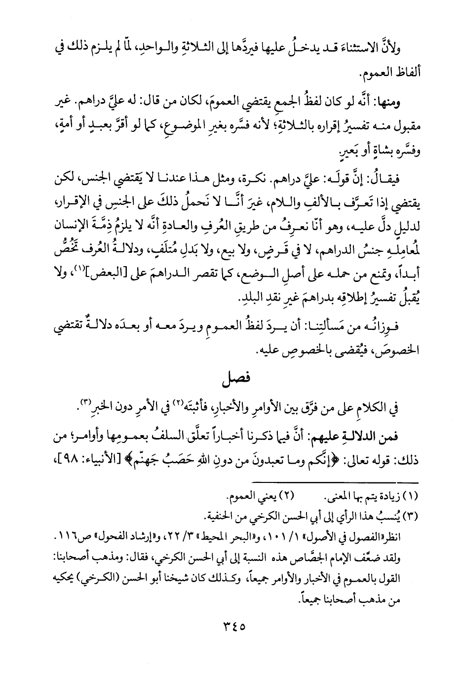 ولقد ضعَّف الإمام الجصِّاص هذه النسبة إلى أبي الحسن الكرخي، فقال: ومذهب أصحابنا: القول بالعموم في الأخبار والأوامر جميعاً، وكذلك كان شيخنا أبو الحسن (الكرخي) يحكيه من مذهب أصحابنا جميعاً.