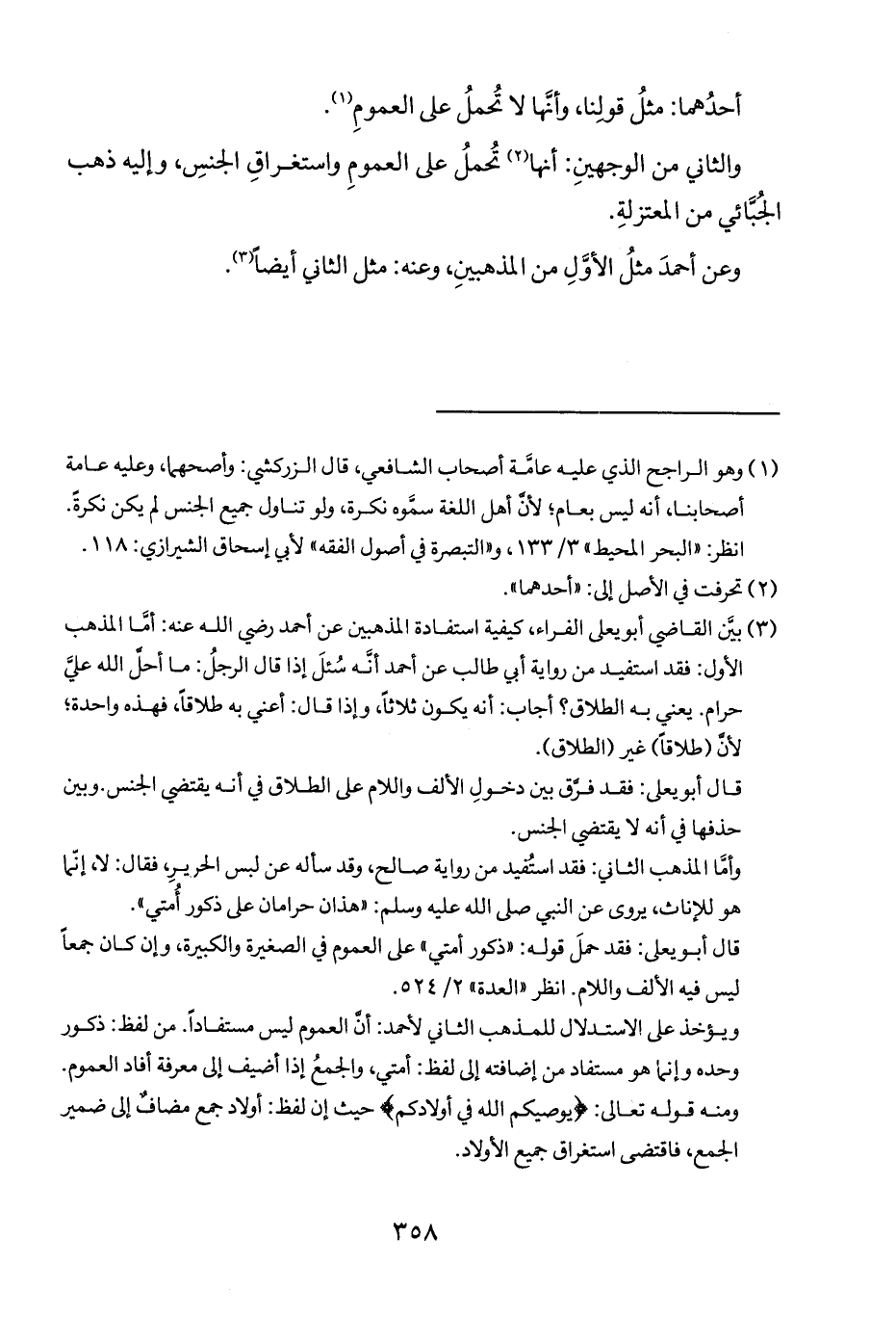 ويؤخذ على إلاستدلال للمذهب الثاني لأحمد: أنَّ العموم ليس مستفاداً. من لفظ: ذكور وحده وإنما هو مستفاد من إضافته إلى لفظ: أمتي، والجمعُ إذا أضيف إلى معرفة أفاد العموم.
