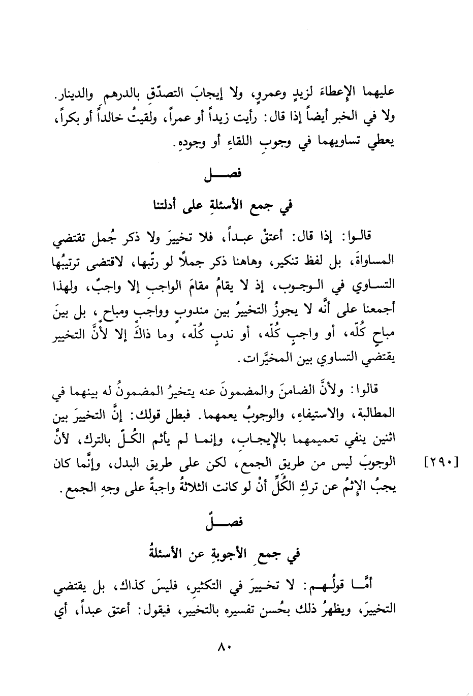 قالوا: ولأنَّ الضامنَ والمضمونَ عنه يتخيرُ المضمونُ له بينهما في المطالبة، والاستيفاءِ، والوجوبُ يعمهما. فبطل قولك: إنَ التخييرَ بين اثنين ينفي تعميمهما بالإِيجاب، وانما لم يأثم الكُلّ بالترك، لأن الوجوبَ ليس من طريقِ الجمعَ، لكن على طريق البدل، وإنما كان يجبُ الإثمُ عن تركِ الكُل أنْ لو كانت الثلالةُ واجبةً على وجهِ الجمع.