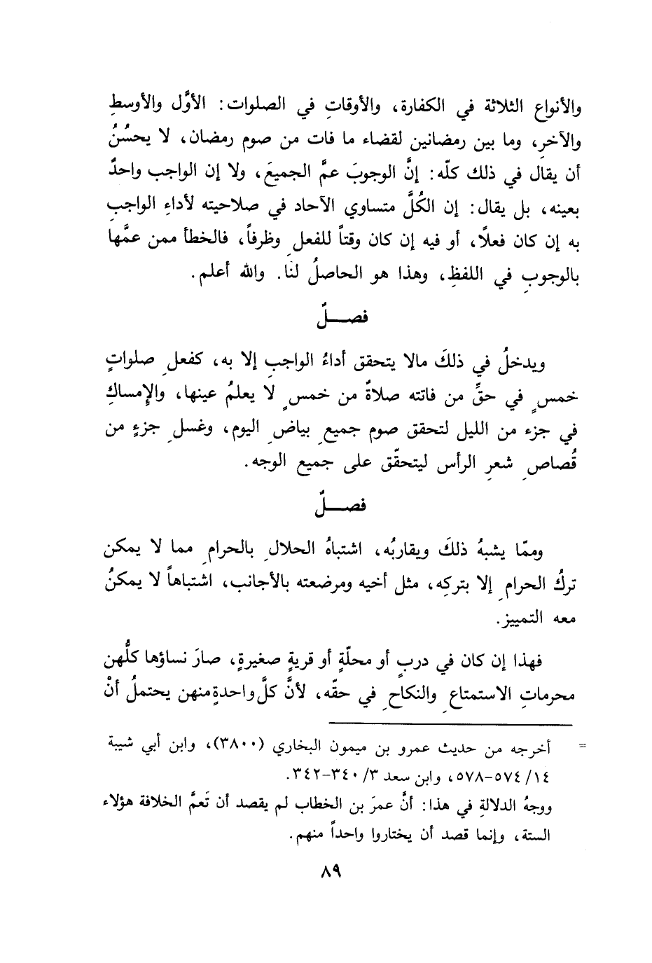 والأنواع الثلاثة في الكفارة، والأوقاتِ في الصلوات: الأول والأوسطِ والآخرِ، وما بين رمضانين لقضاء ما فات من صوم رمضان، لايحسُنُ أن يقال في ذلك كلّه: إن الوجوبَ عم الجميعَ، ولا إن الواجب واحد بعينه، بل يقال: إن الكُل متساوي الآحاد في صلاحيته لأداءِ الواجب به إن كان فعلًا، أو فيه إن كان وقتاً للفعل وظرفاً، فالخطأ ممن عمَّهَا بالوجوبِ في اللفظِ، وهذا هو الحاصلُ لنَا. والله أعلم.