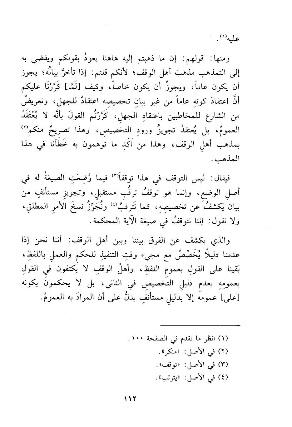 فيقال: ليس التوقف في هذا توقفاً (٣) فيما وُضِعَتِ الصيغةُ له في أصلِ الوضع، وإنما هو توقفُ ترقُبِ مستقبلٍ، وتجويزِ مستأنفٍ من بيان يَكشف عن تخصيصِهِ، كما نَترقبُ (٤) ونُجَوِّزُ نسخَ الأمرِ المطلقِ، ولا نقول: إننا نتوقفُ في صيغة الآية المحكمة.