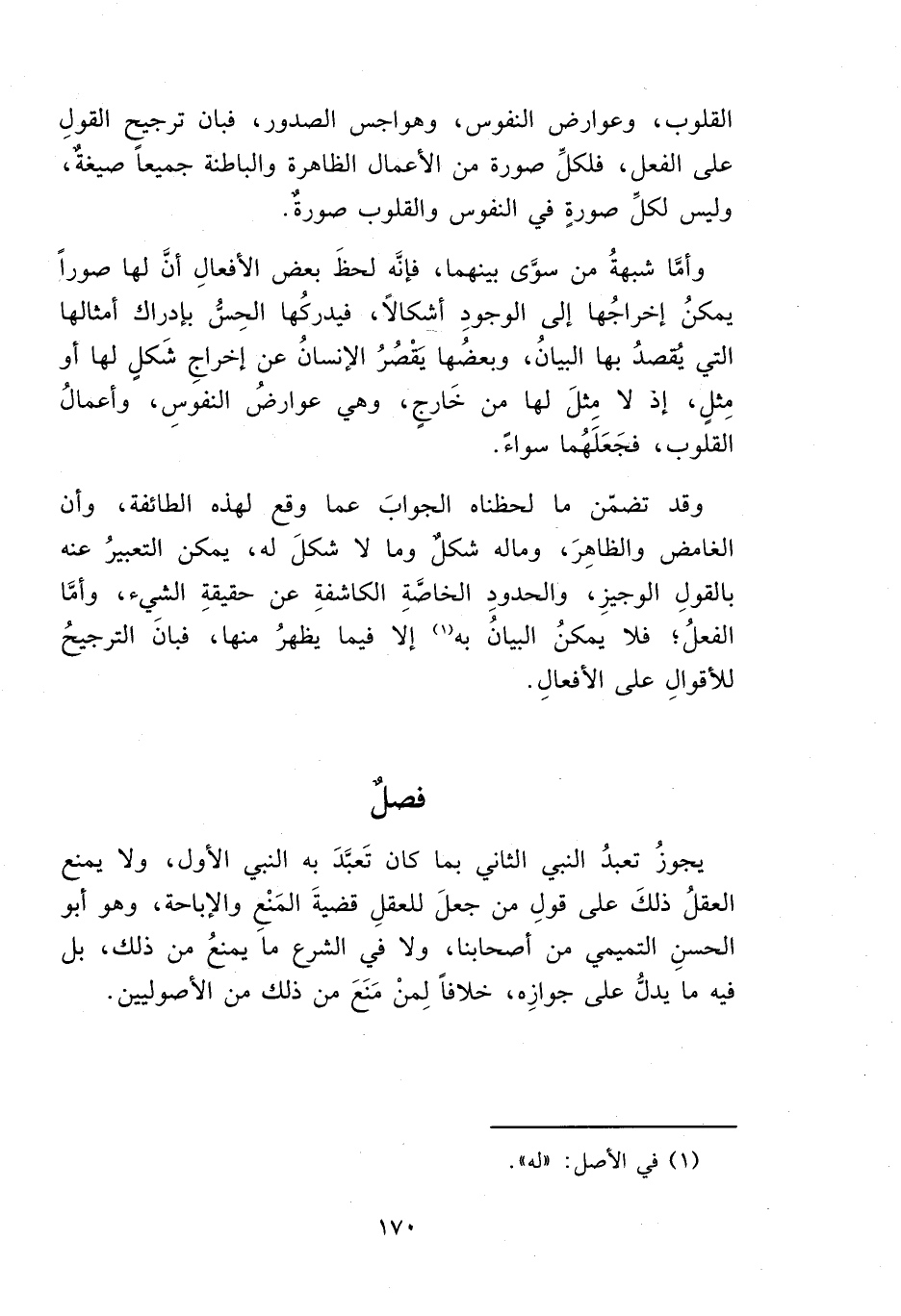 القلوب، وعوارض النفوس، وهواجس الصدور، فبان ترجيح القولِ على الفعل، فلكلِّ صورة من الأعمال الظاهرة والباطنة جميعاً صيغة، وليس لكل صورةٍ في النفوس والقلوب صورةٌ.