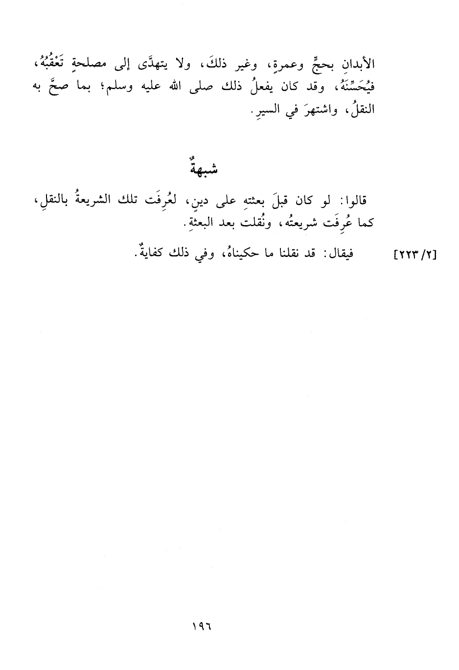 قالوا. لو كان قبلَ بعثتهِ على دينٍ، لعُرِفَت تلك الشريعةُ بالنقلِ، كما عُرِفَت شريعتُه، ونُقلت بعد البعثةِ.