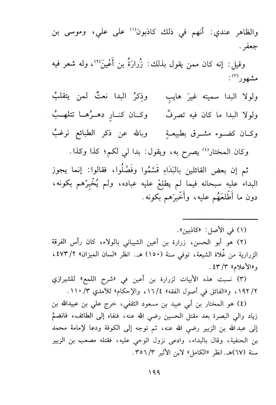 (٣) نسبت هذه الأبيات لزرارة بن أعين في "شرح اللمع" للشيرازي ٢/ ١٩٢، و"الفائق في أصول الفقه" ٤/ ١٦، والإحكام" للآمدي ٣/ ١١٠.